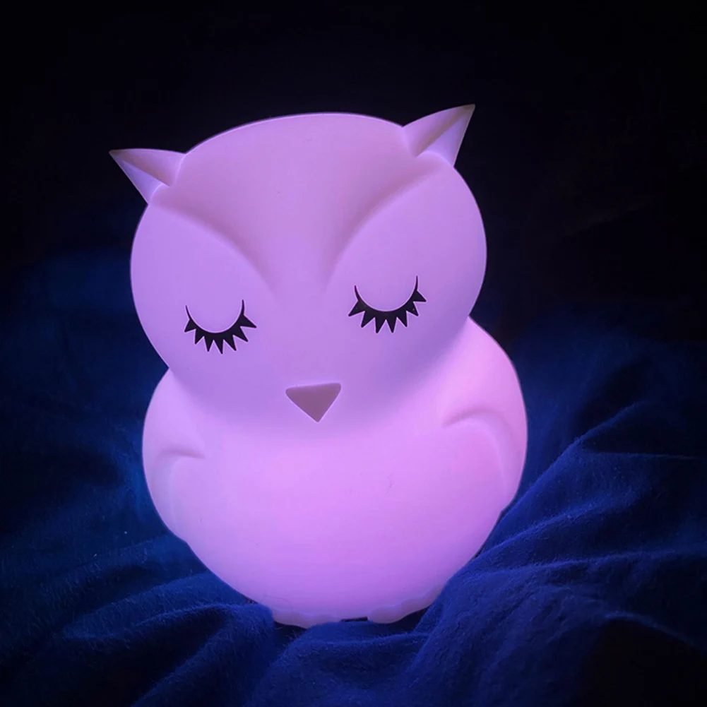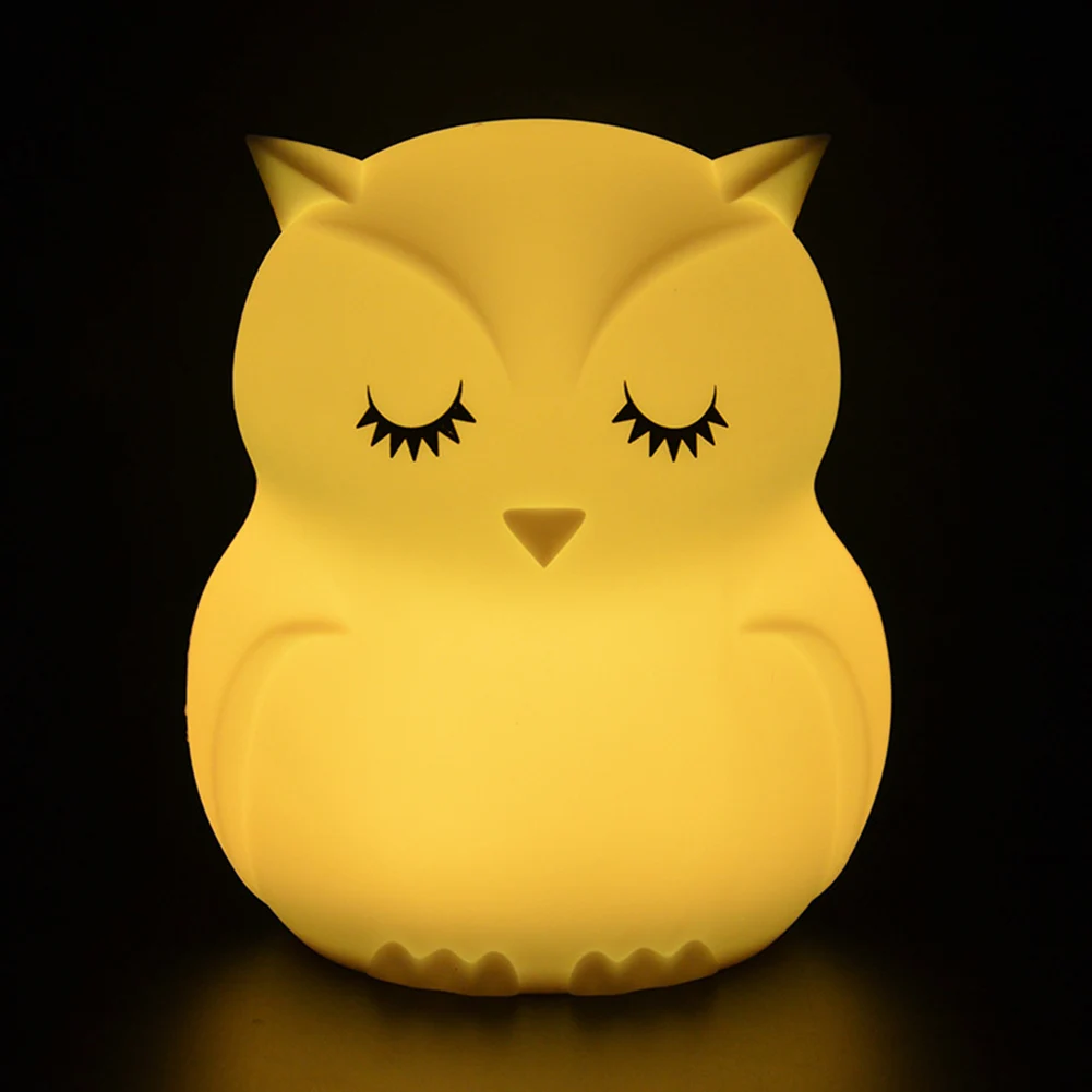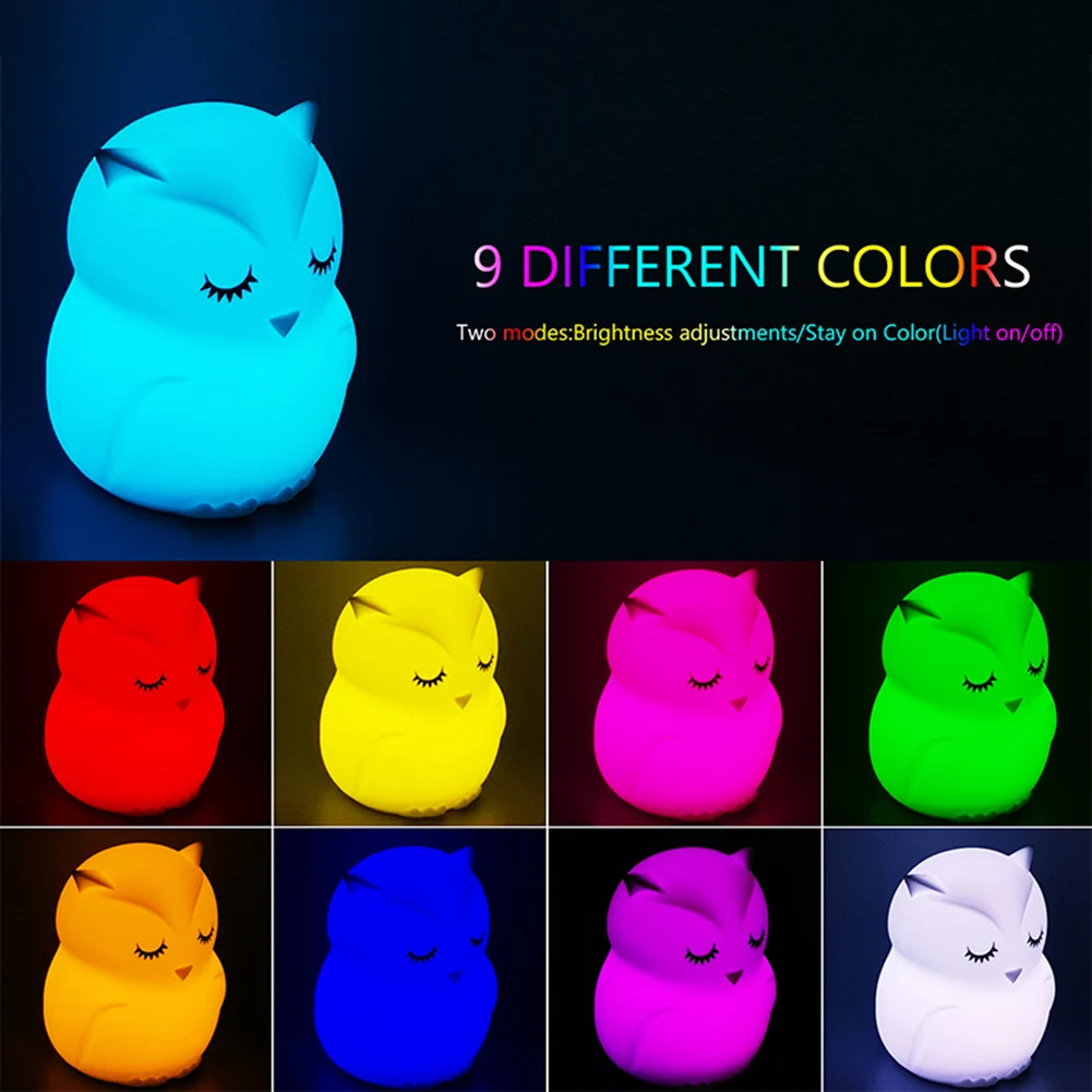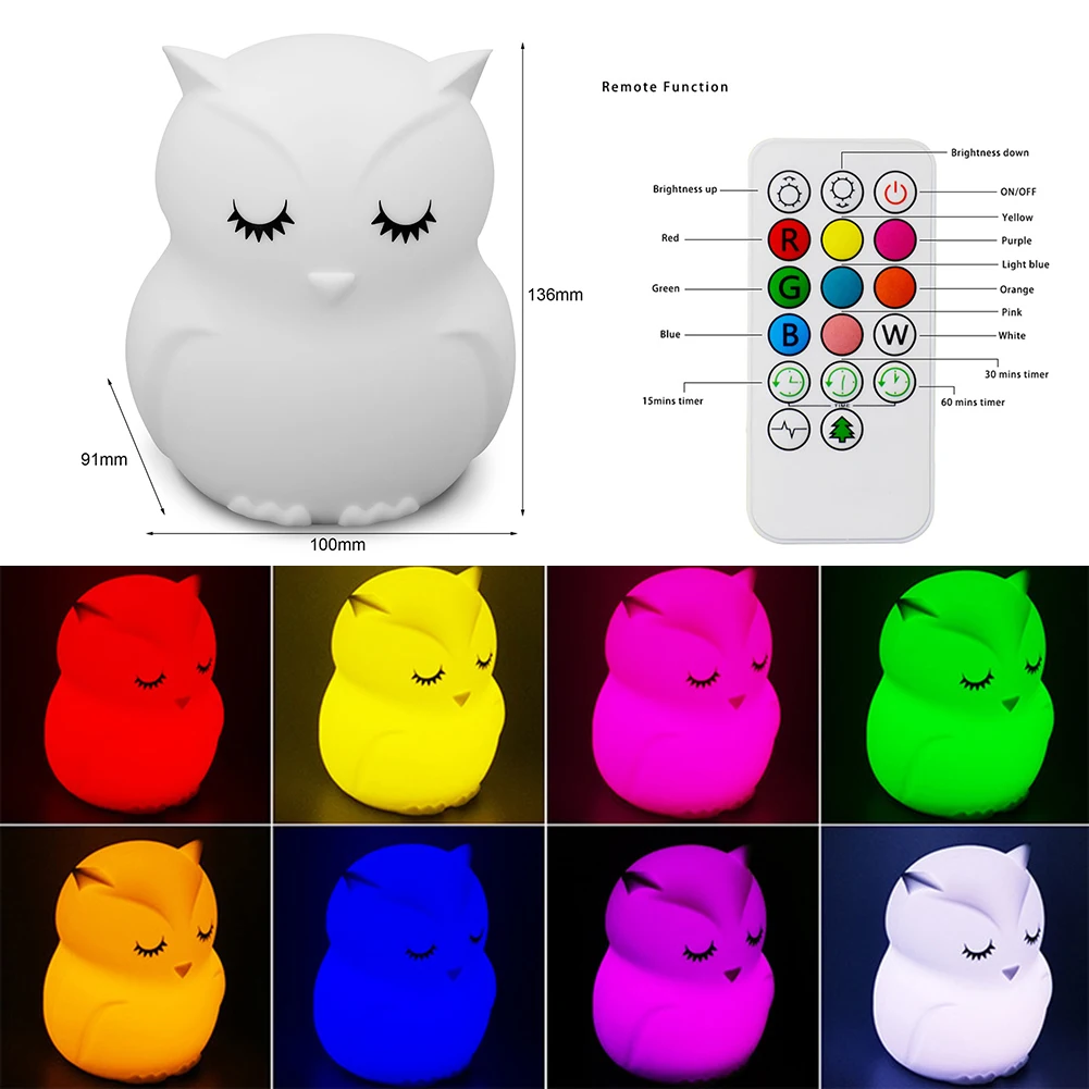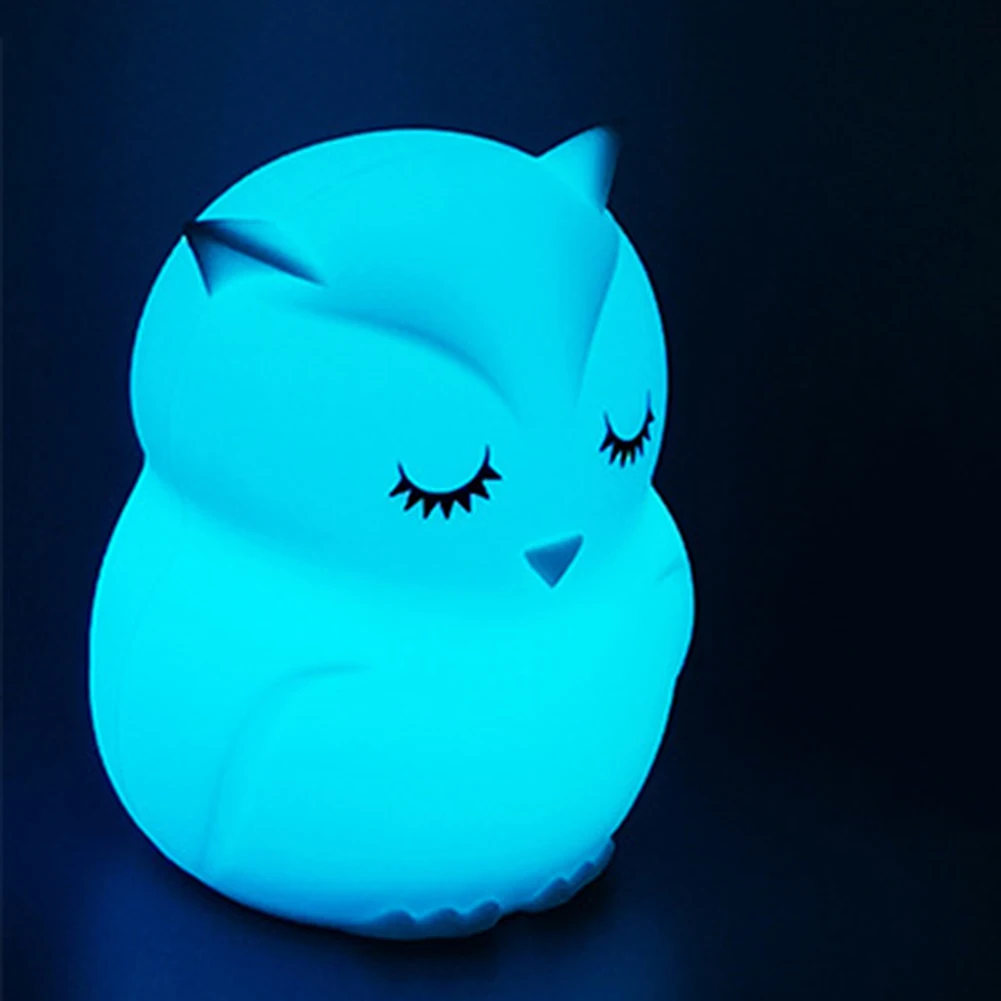 Сова светодиодный Ночной светильник с мультяшками силиконовый лампа сенсорный пульт дистанционного управления 7 Цвета Управление Перезаряжаемые прикроватная лампа для детей детская спальня