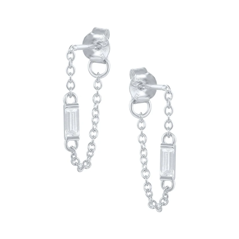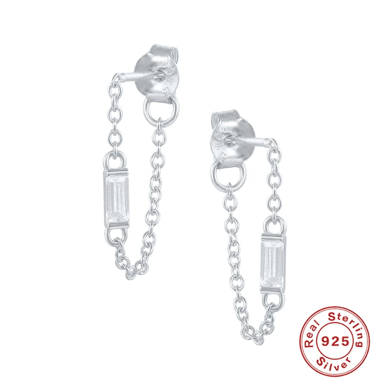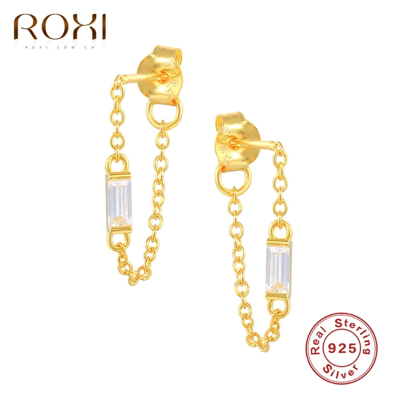 ROXI прямоугольные циркониевые Кристаллы с кисточками и цепочкой, серьги-гвоздики для женщин и девочек, повседневные серьги для пирсинга из стерлингового серебра 925 пробы