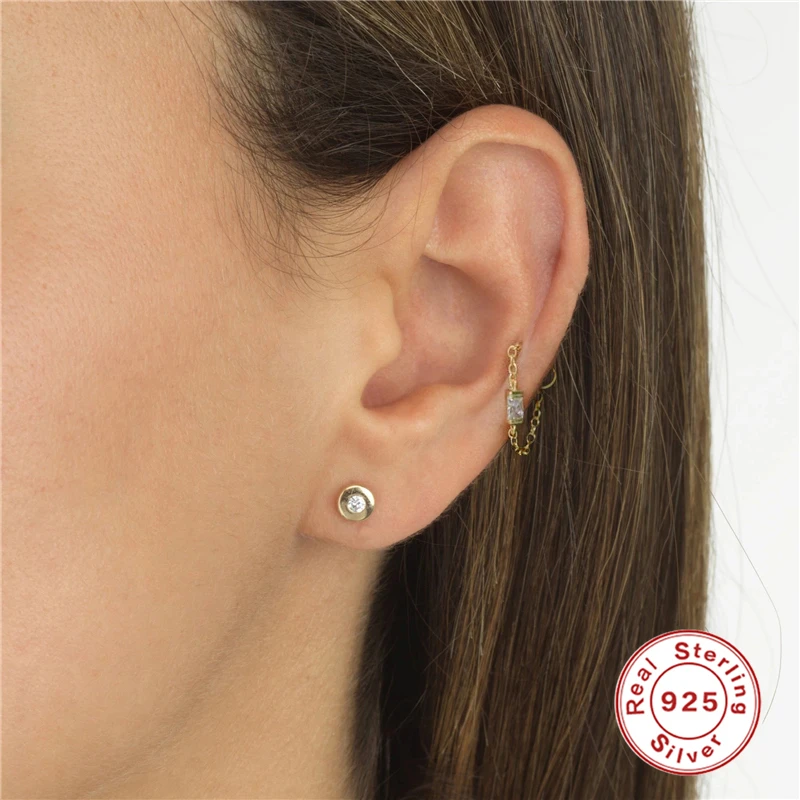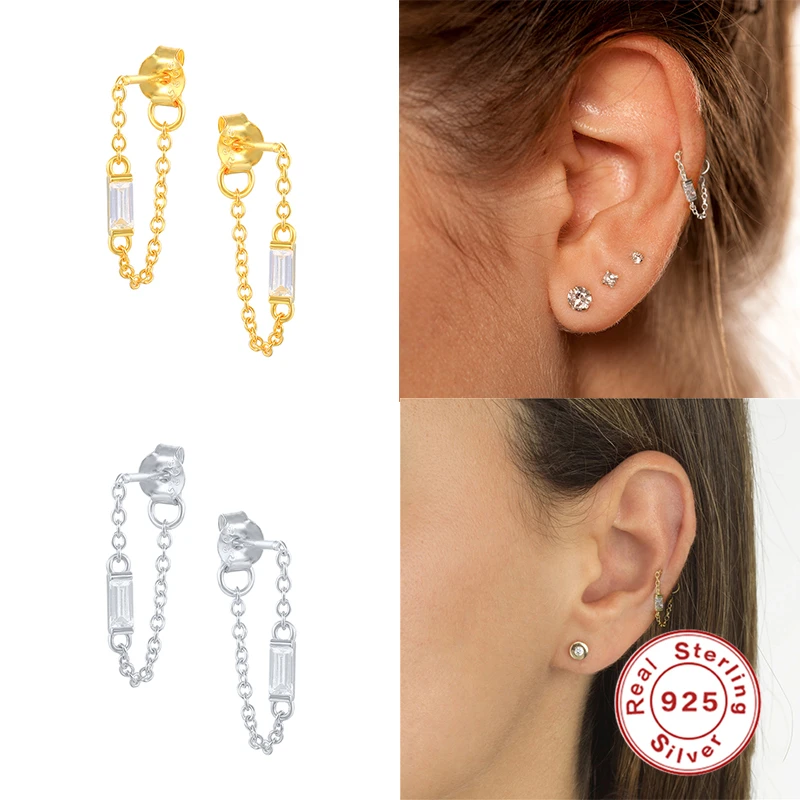 Oorbellen zilver 925 тассель цепь квадратный Циркон пирсинг серьги ...