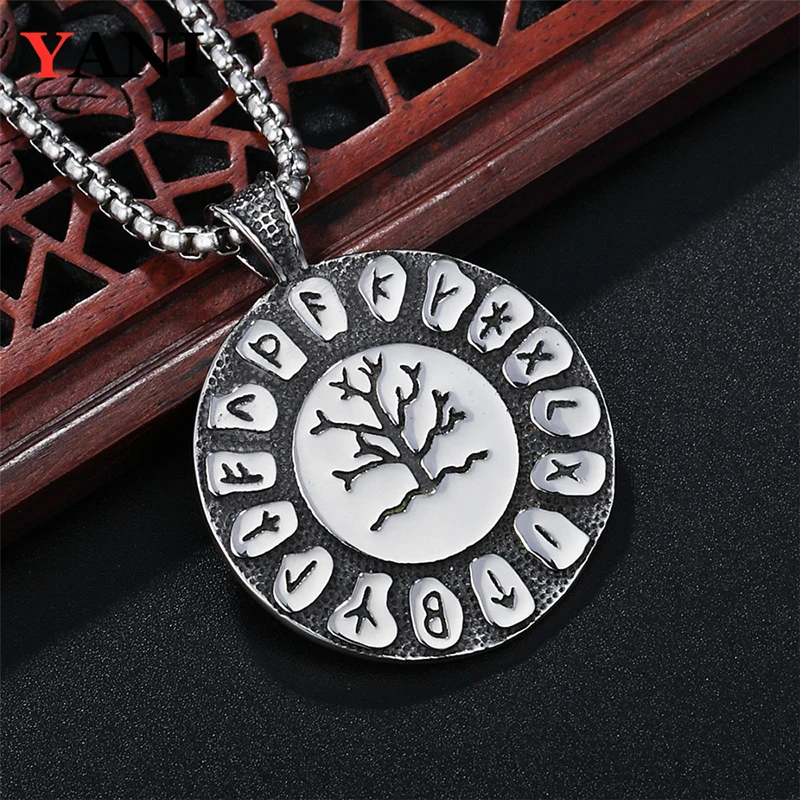 Ожерелье с круглой подвеской из нержавеющей стали 316L в стиле ретро с надписью Древо жизни для мужчин и женщин