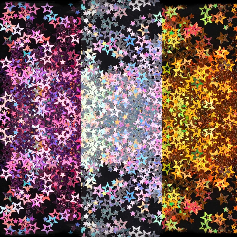 Голографическая милые звезды ногтей блестящие хлопья 3D Сияющий смешанный Размеры женский пиджак с блестками и блестки для ногтей маникюр сделай сам украшения