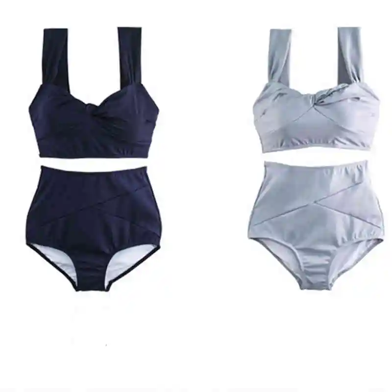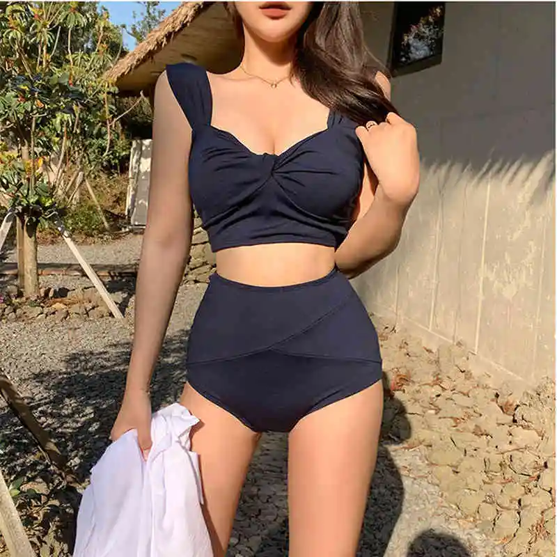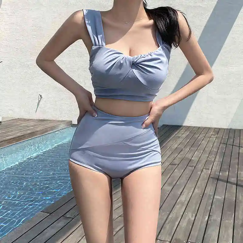 2021 новинка из Южной Кореи; Платье на бретельках с глубоким вырезом, Особенности плиссированные купальники Высокая Талия Стройное сексуальное бикини сплошной Цвет Разделение горячий весенний купальник