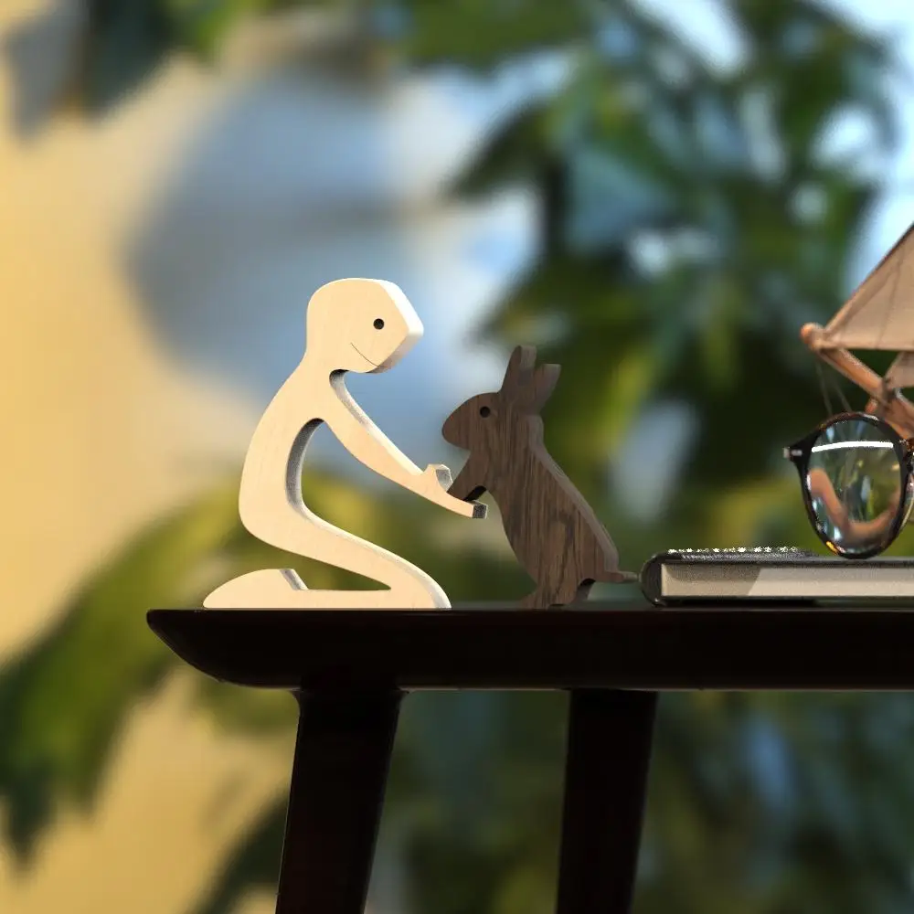 Фигурка человека и собаки настольная Orna деревянная Мужская щенок-...
