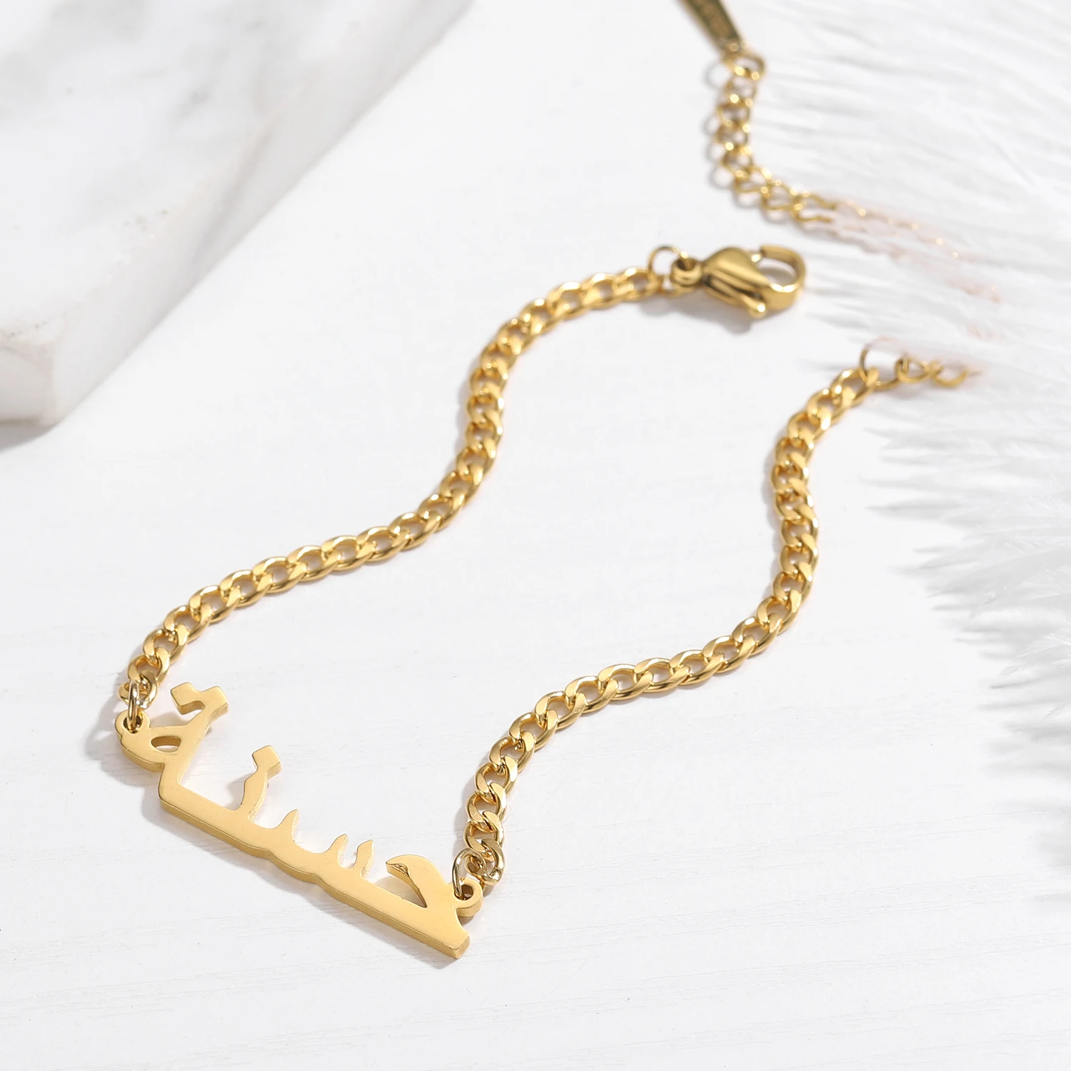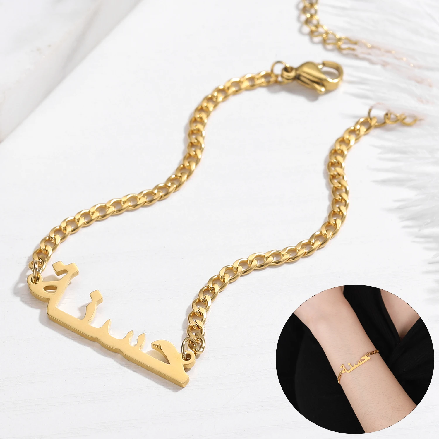 Индивидуальный арабский именной браслет для женщин, персонализированный золотой браслет из нержавеющей стали, кубинская цепь, браслет с буквами, ювелирные изделия, подарок BFF