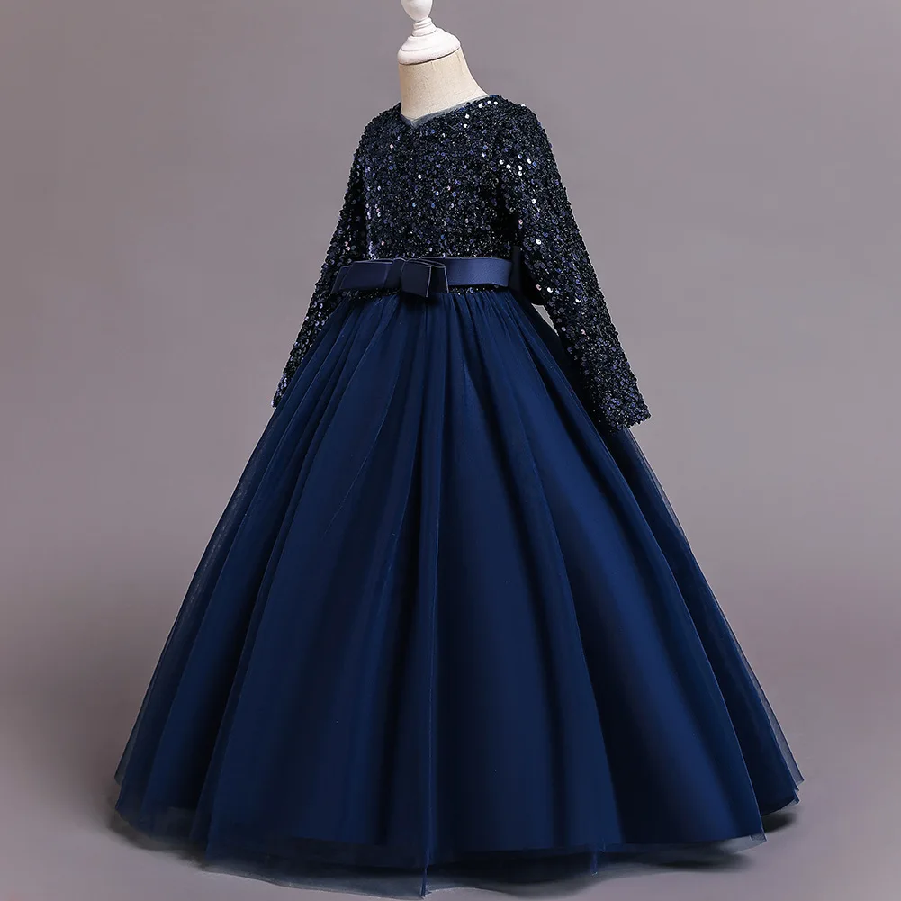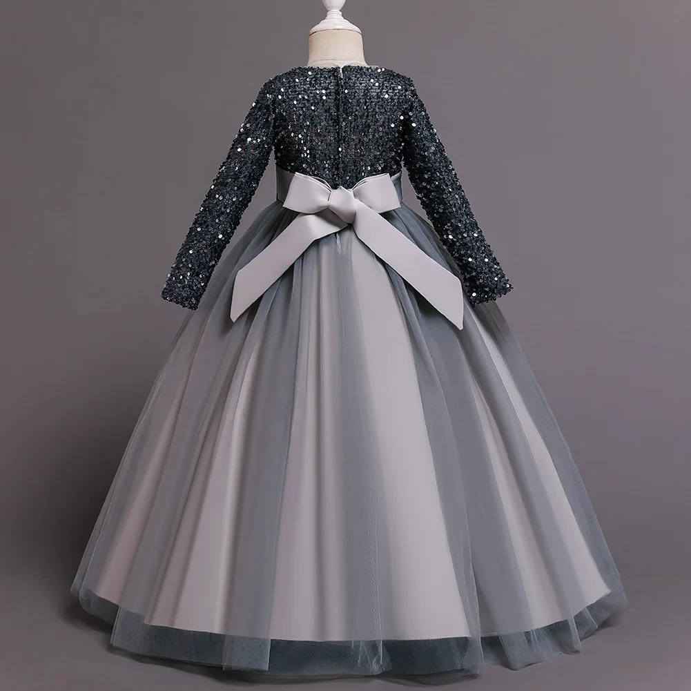 Ажурное платье принцессы От 4 до 14 лет наряд для девочки на Рождество Зима вечерние костюмы детские торжественные платья с пайетками; Весенне-Осенняя детская одежда, костюм для выпускного