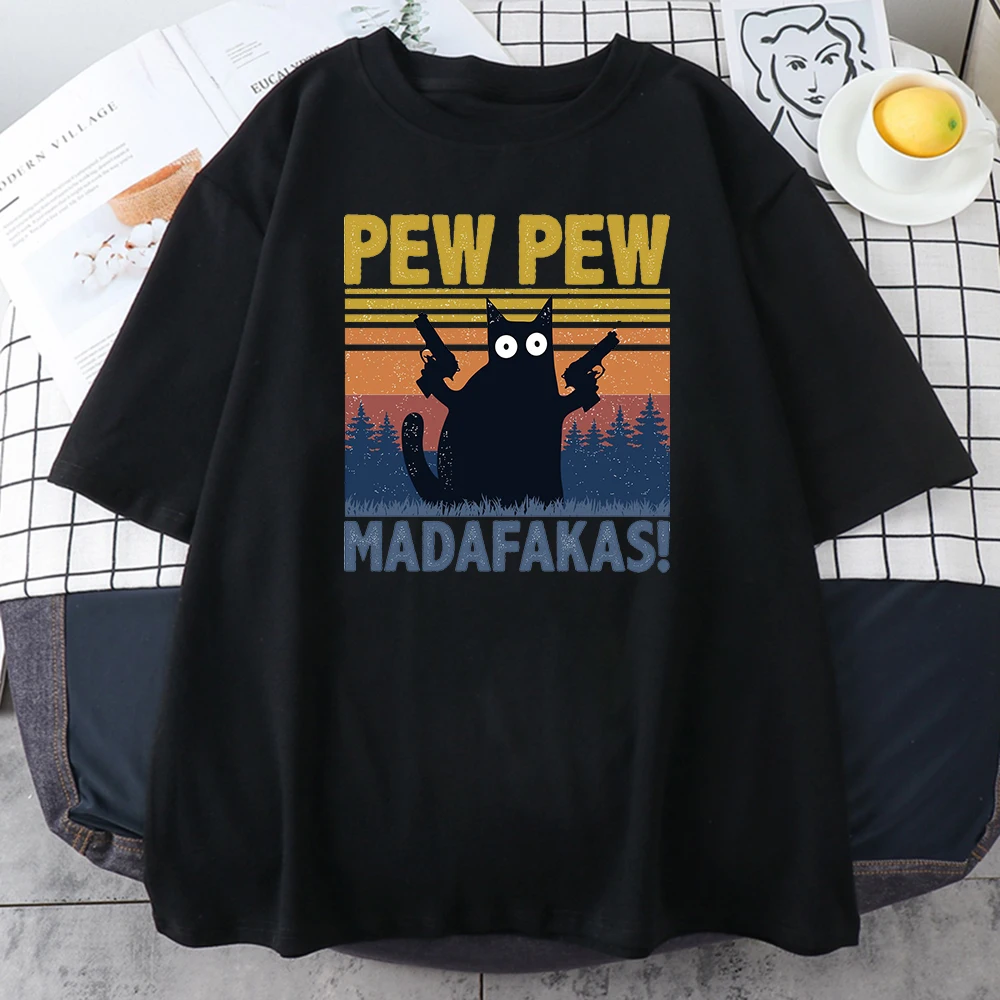Женская футболка Pew Madafakas с принтом в стиле Харадзюку, топ с мультяшным аниме, летняя хлопковая свободная футболка с короткими рукавами, Женская Повседневная футболка