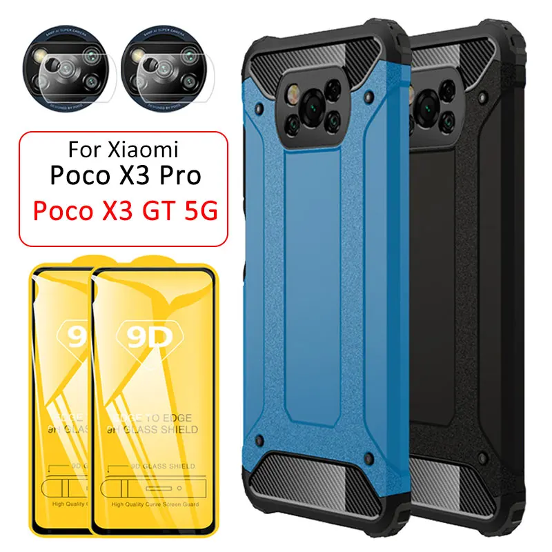 чехол для поко х3 про, Усиленный ударопрочный чехол на Xiaomi Poco X3 Pro чехол и стекло, Poco-F3 Pocofone X3 Pro силикон и пластик чехлы poko x3 pro чехол бронированный чехол на Poco X3 GT 5G