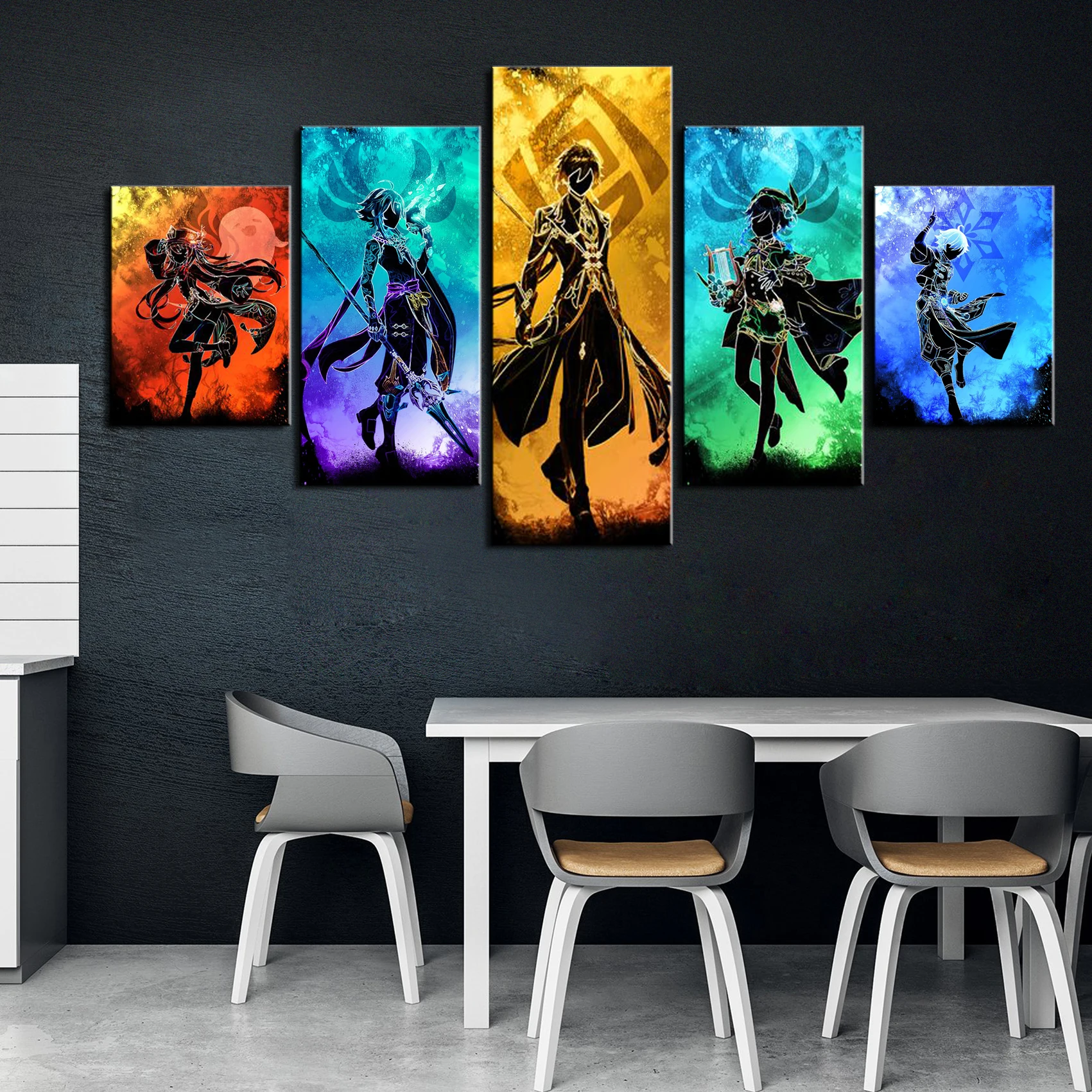 Постеры с эффектом Genshin 5 шт., HD постер с игрой, аниме постер с девушкой, наклейка, домашний декор, кабинет, спальня, бар, кафе, настенная живопись