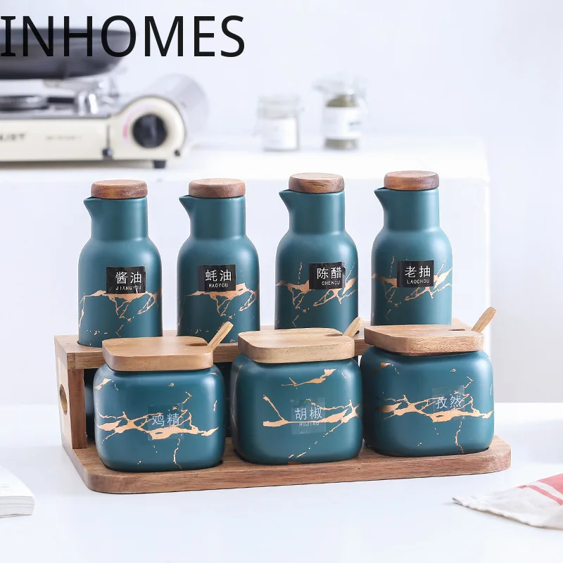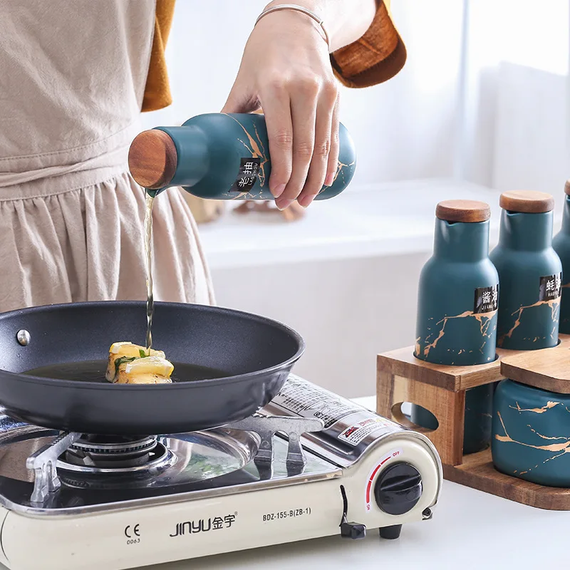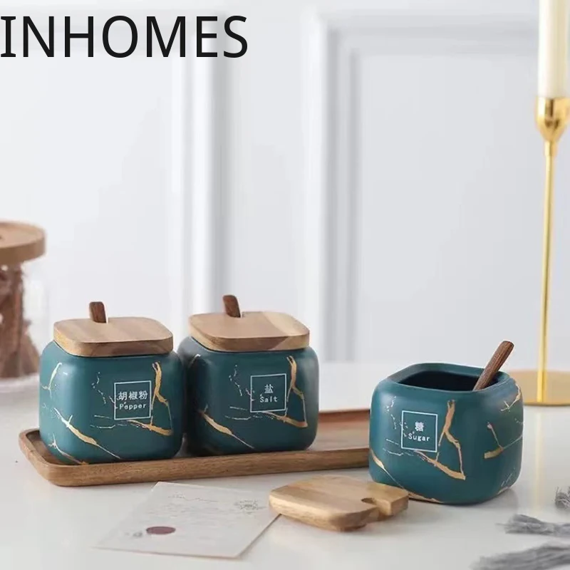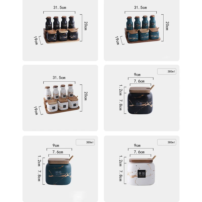 Керамические аксессуары для кухни в скандинавском стиле с мраморным узором набор баков для приправ солонка Шейкер Набор банок для специй бамбуковые деревянные крышки