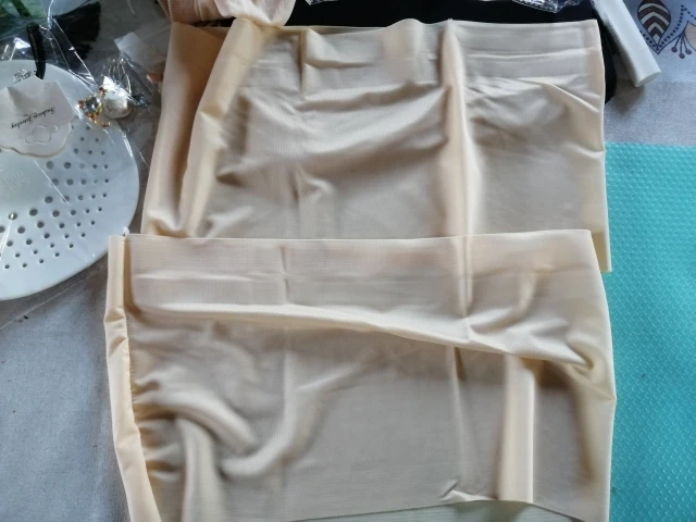 Очень пахнет уксусом. Но все по размеру. Даже больше. Мне кажется прицеплять к нижнему белью надо, как чулки. Низ гель держит, но очень полоска тонкая