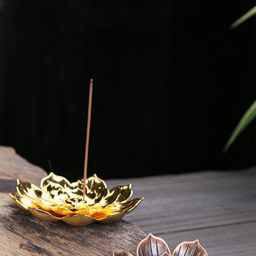 Бронзовая тарелка для благовоний в форме лотоса, палочка из сандало...