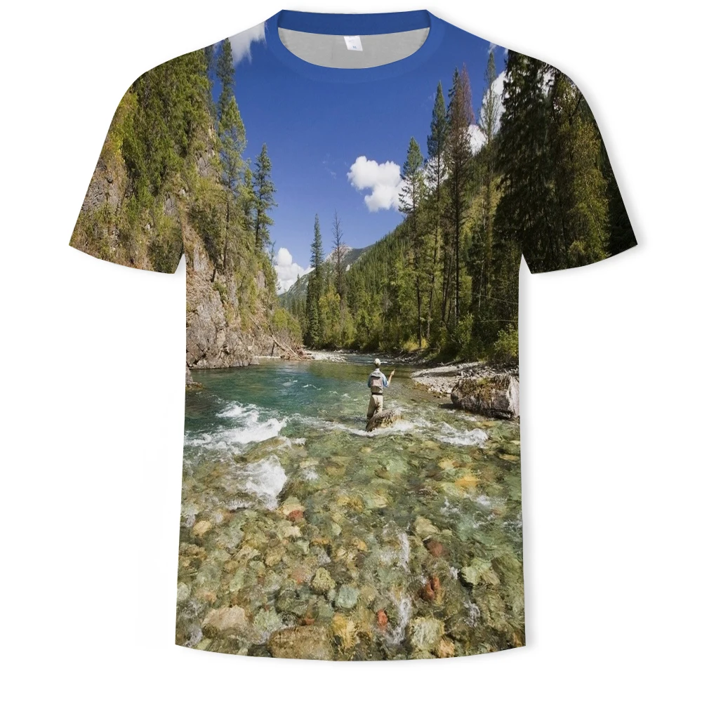 Мужская Летняя Удобная футболка с коротким рукавом, модель 2021 года, модная повседневная футболка с объемным рисунком деревенского пейзажа