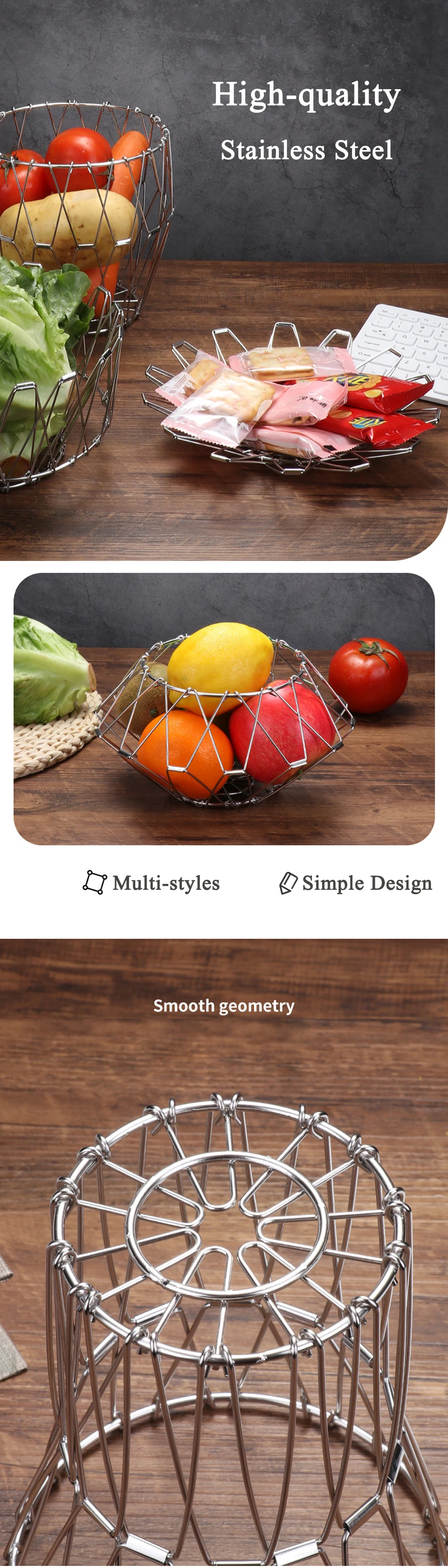 Корзина для фруктов, контейнер, деформация, металлическая проволока, миски для хранения овощей, поднос для закусок, держатель для кухни, полый резной стеллаж для слива
