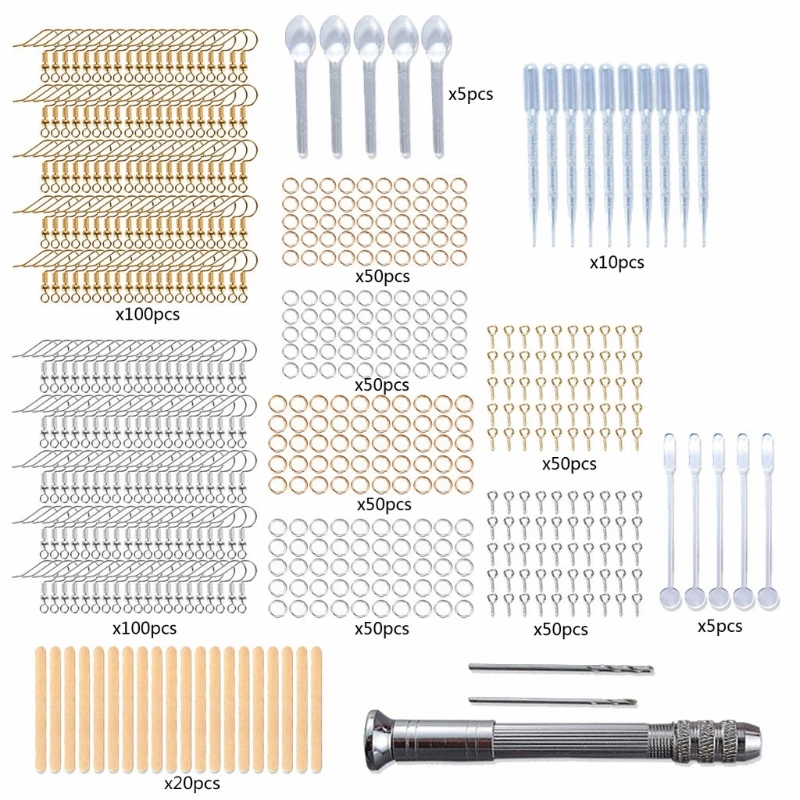 Набор сережек из смолы, серьги-крючки, кольца для прыжков, винтовые булавки, эпоксидная смола, деревянные палочки для перемешивания, набор инструментов из смолы