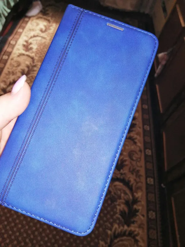 Чехол норм, Но датчик скана пальца очень глубоко, поэтому не срабатывает. Отверстие узкое, трудно подобрать, только детям. На самом деле чехол на тройку. Естественно не кожа а синтетический материал. Магнит слабоват. Цвет синий темнее, чем на фото.