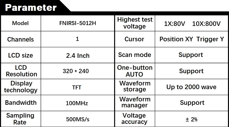 5012H 2,4 дюйма Экран Цифровой осциллограф 500 мсс частота дискретизации 100 МГц аналоговая полоса пропускания Поддержка сохранения формы сигнала
