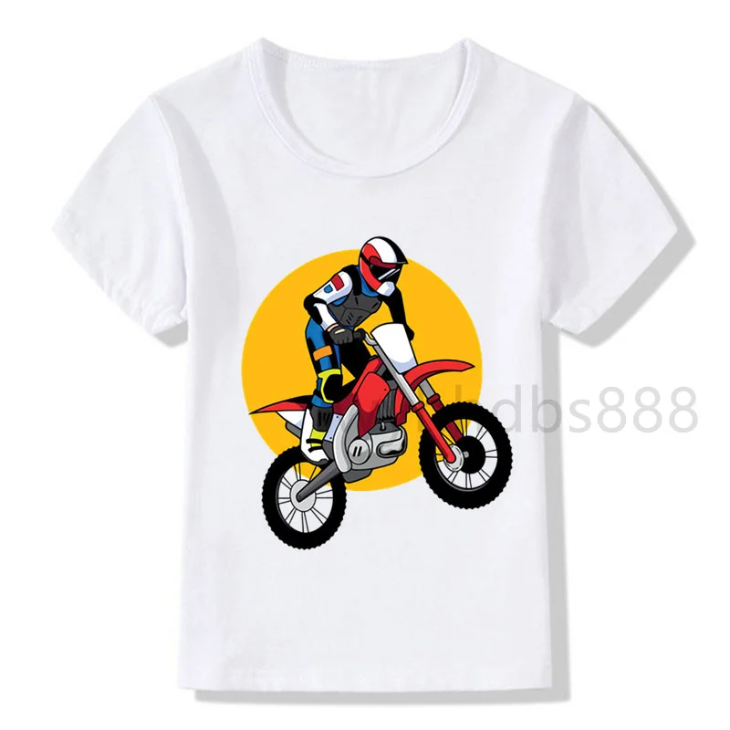 Мотоцикл для мотокросса футболка для маленьких мальчиков с принтами персонажей из мультфильмов; Футболки с принтом для девочек футболки для грудничков; Сезон Лето Одежда для улицы; Одежда для девочек; Одежда для подростков