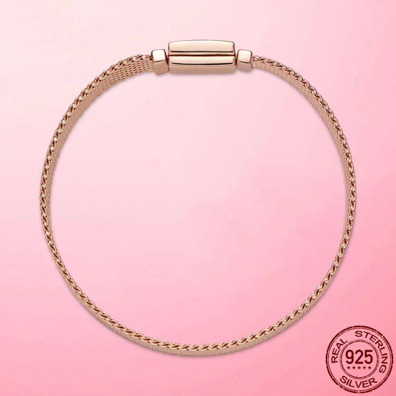 Лидер продаж, серебряный браслет серебряного цвета и розового золота, отражающий браслет с фианитами на застежке для женщин, серебряные ювелирные изделия