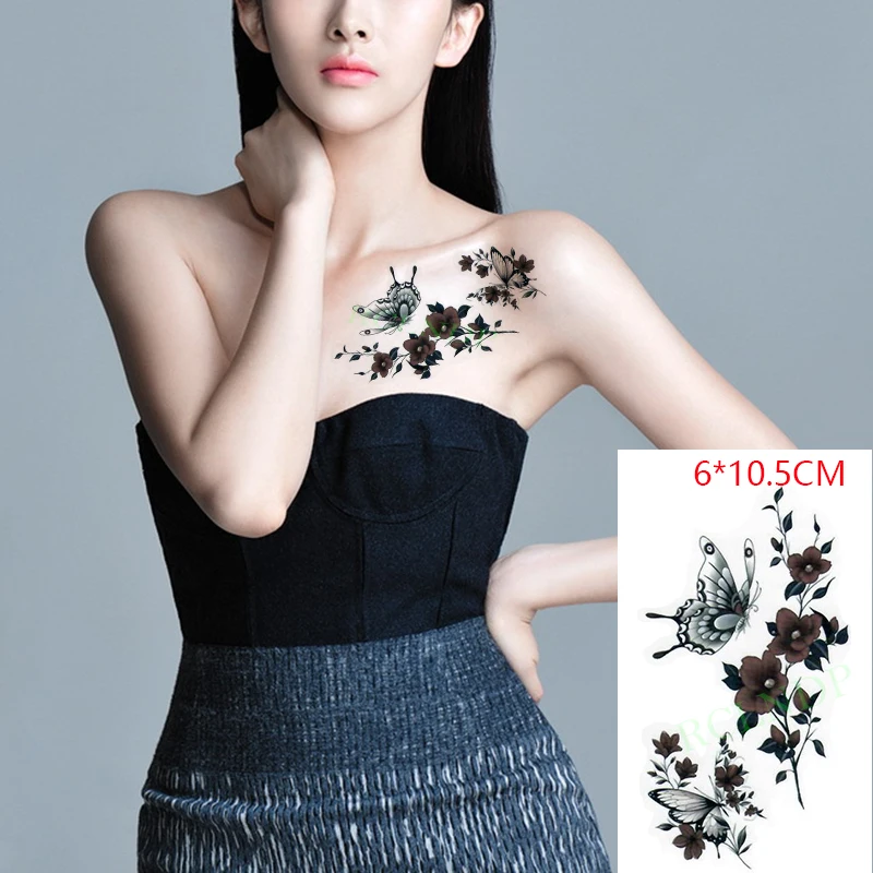 Водостойкая временная татуировка наклейка Роза цветок бабочка сексуальное боди-арт флэш-Татуировка поддельная татуировка для женщин мужчин