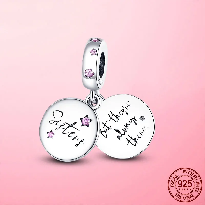 Подвеска-Шарм Сестры навсегда из серебра 925 пробы с розовым цирконием, подвеска под оригинальный браслет Пандора, серебряное ожерелье, ювелирные изделия