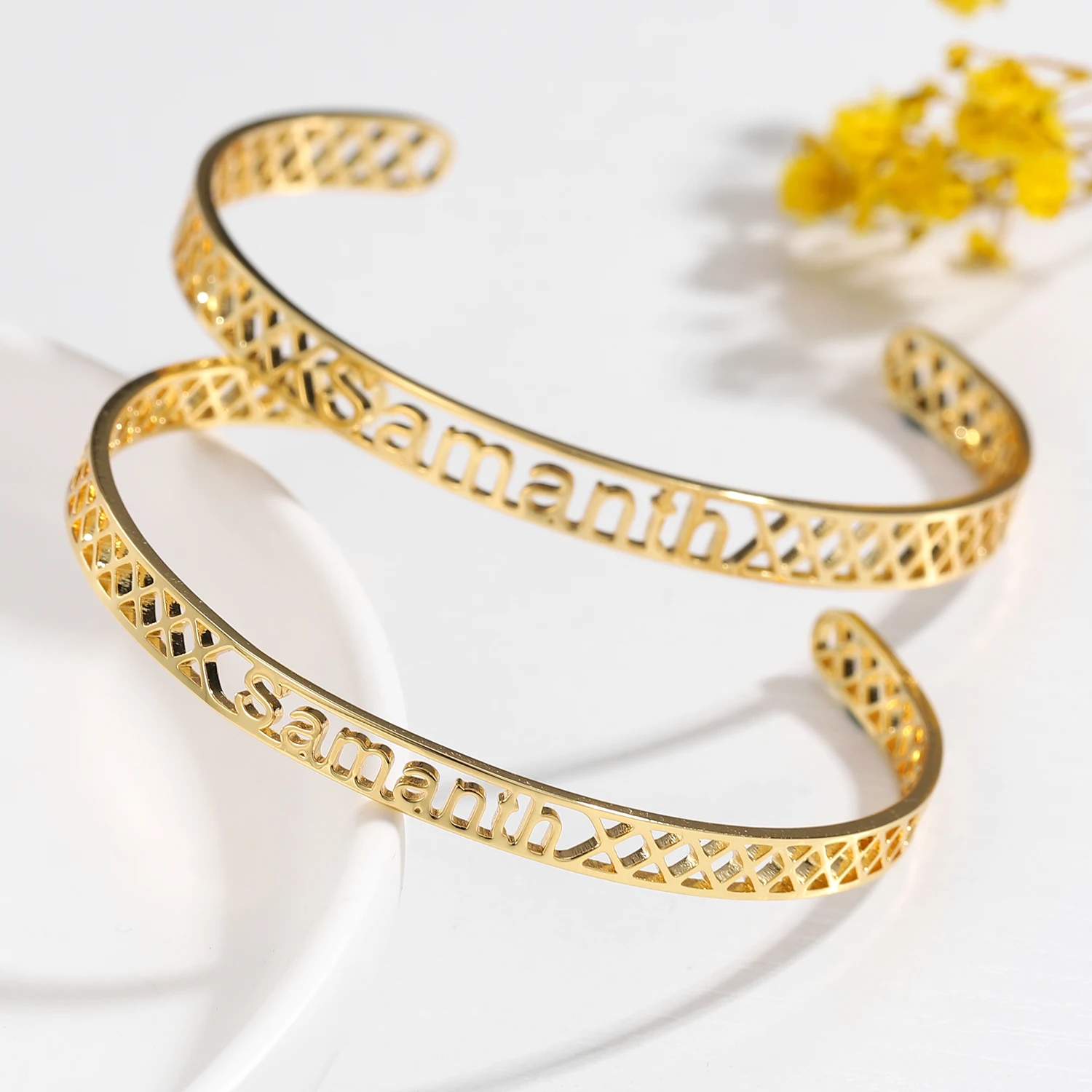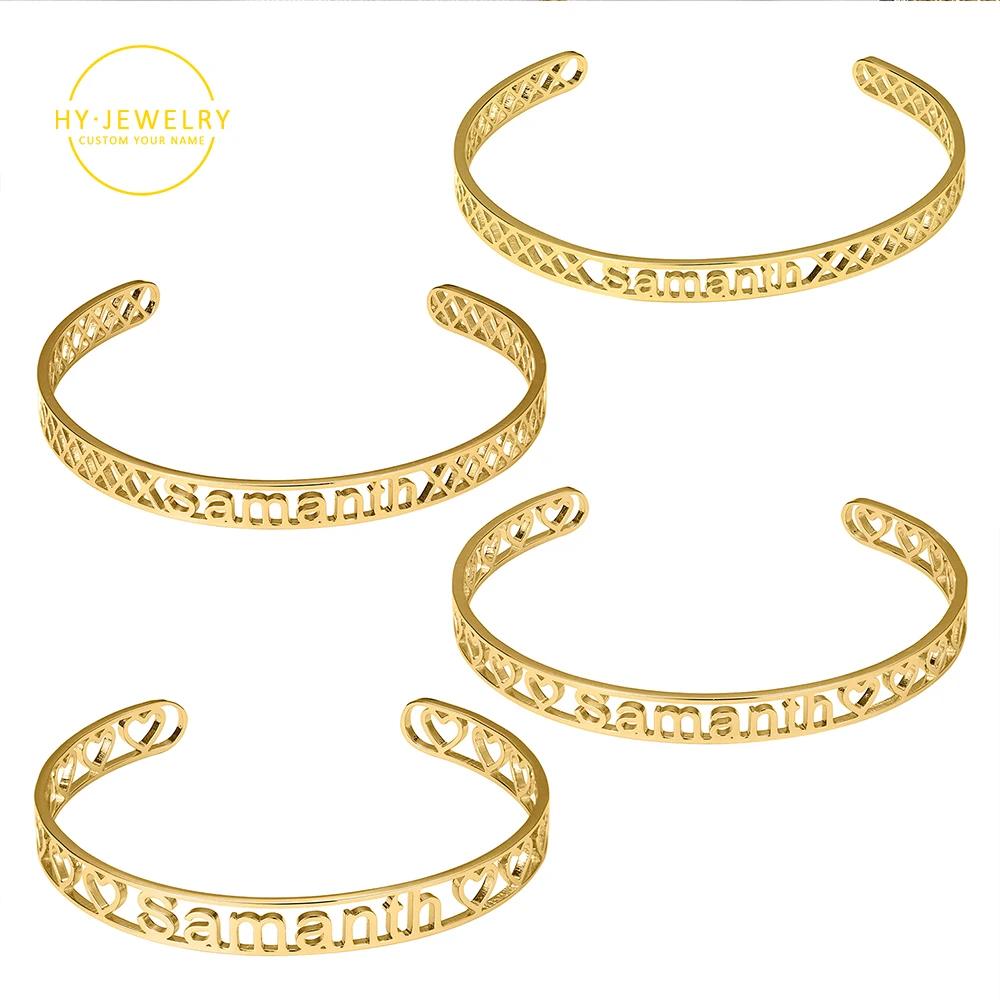 Индивидуальная именная табличка с названием браслет персонализированные пользовательские браслеты манжетного типа для женщин мужчин розовое золото, нержавеющая сталь, ювелирное изделие для женщин, подарок
