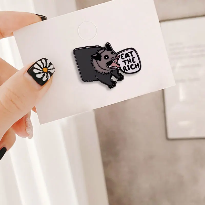 Эмалированная брошь Eat The Rich Opossum, марсупиальная брошь Possum, значок плавучих животных