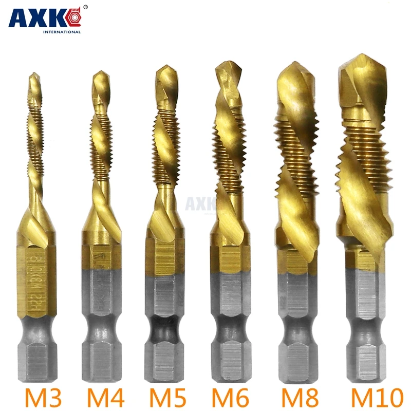 6 шт 1 комплект M3-M10 M3 M4 M5 M6 M8 M10 шестигранным хвостовиком Титан покрытием винт из быстрорежущей стали с резьбой метрическое сверло под Метчик биты AXK