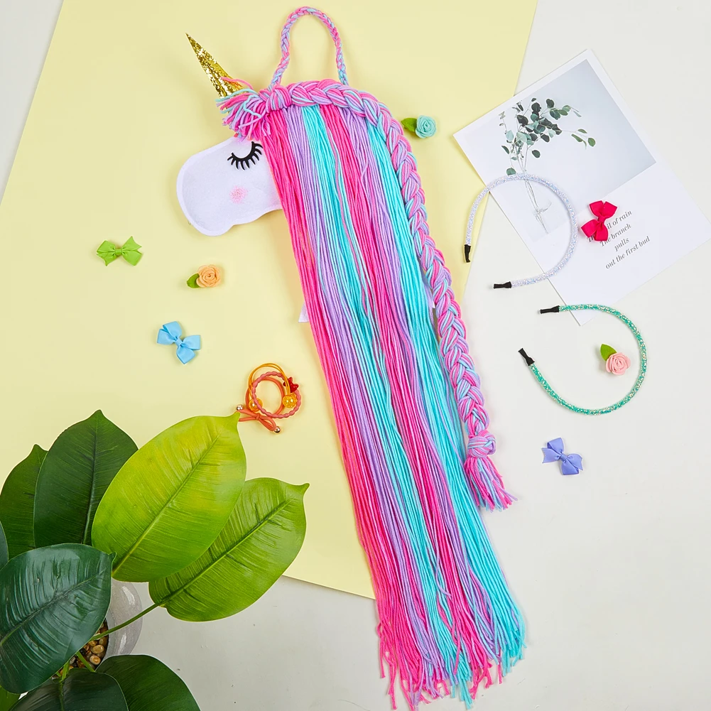 Вешалка для хранения украшений в виде единорога, настенная органайзер для волос в спальне, для девочек, милые зажимы для волос