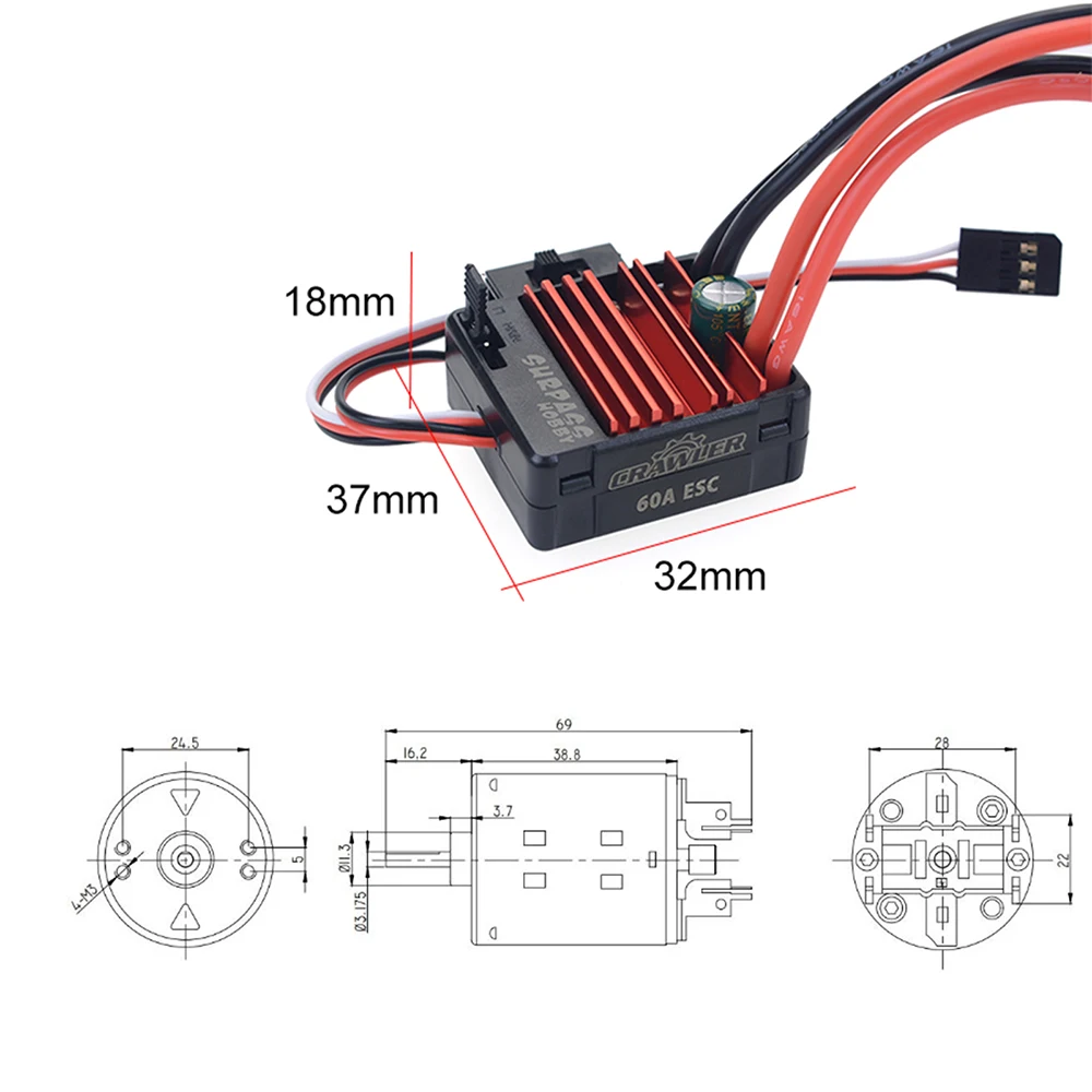 SURPASSHOBBY 5-Slot 540 11T 13T 16T 20T матовый двигатель w / 60A ESC для RC Redcat Volcano EPX Blackout XTE Traxxas TRX-4 1/10 RC Гусеничный автомобиль