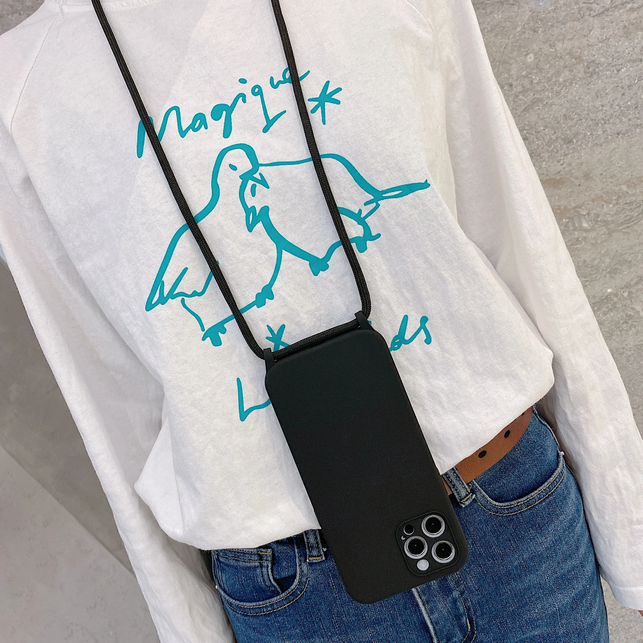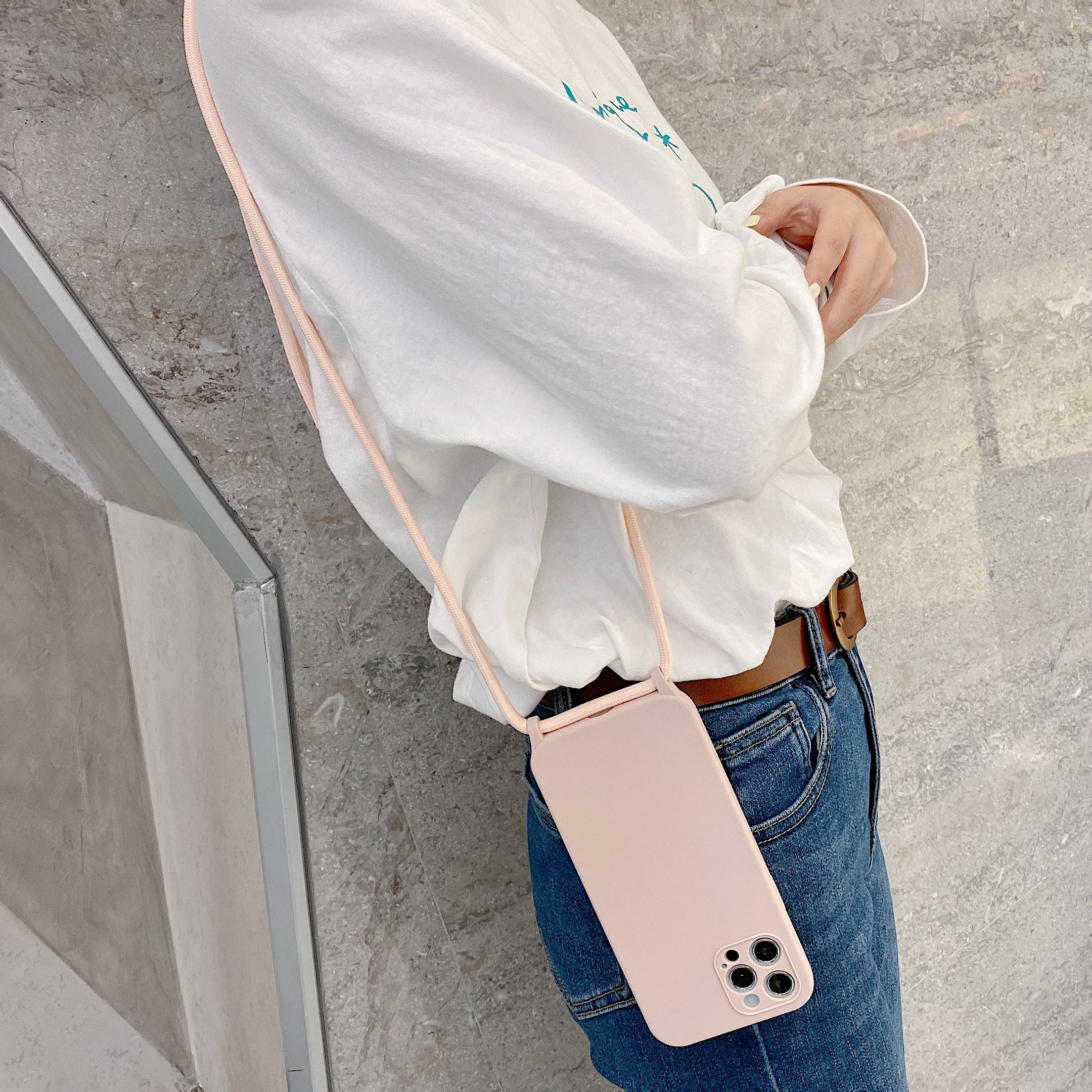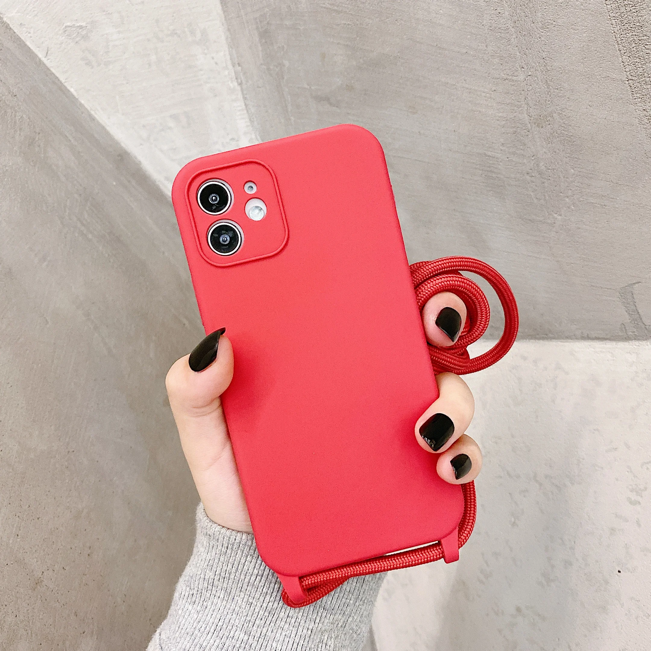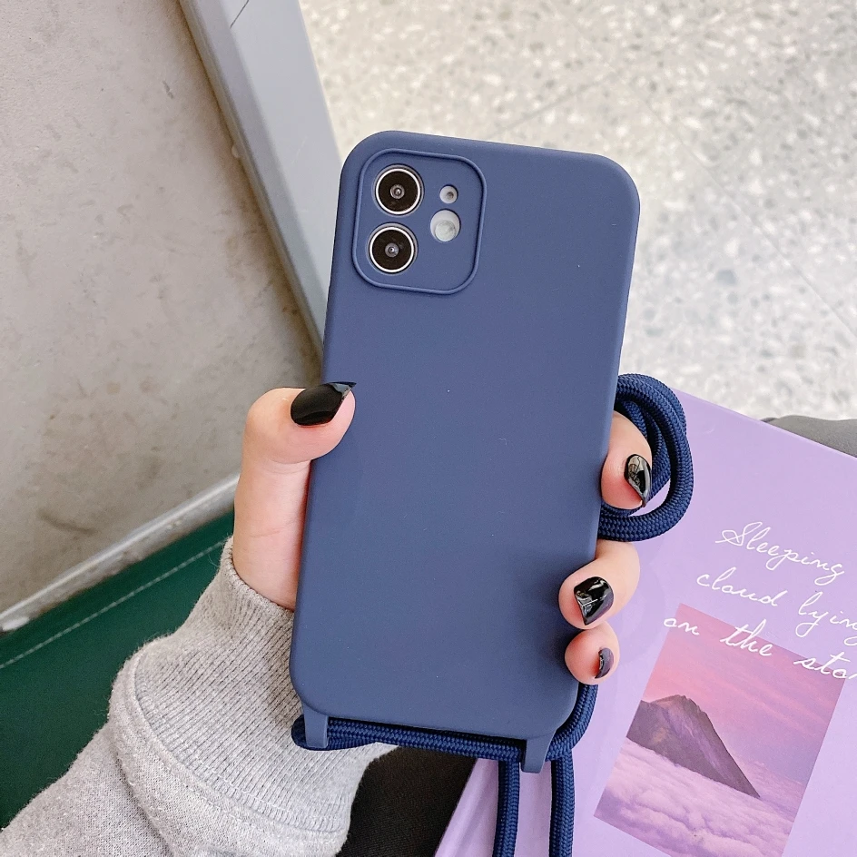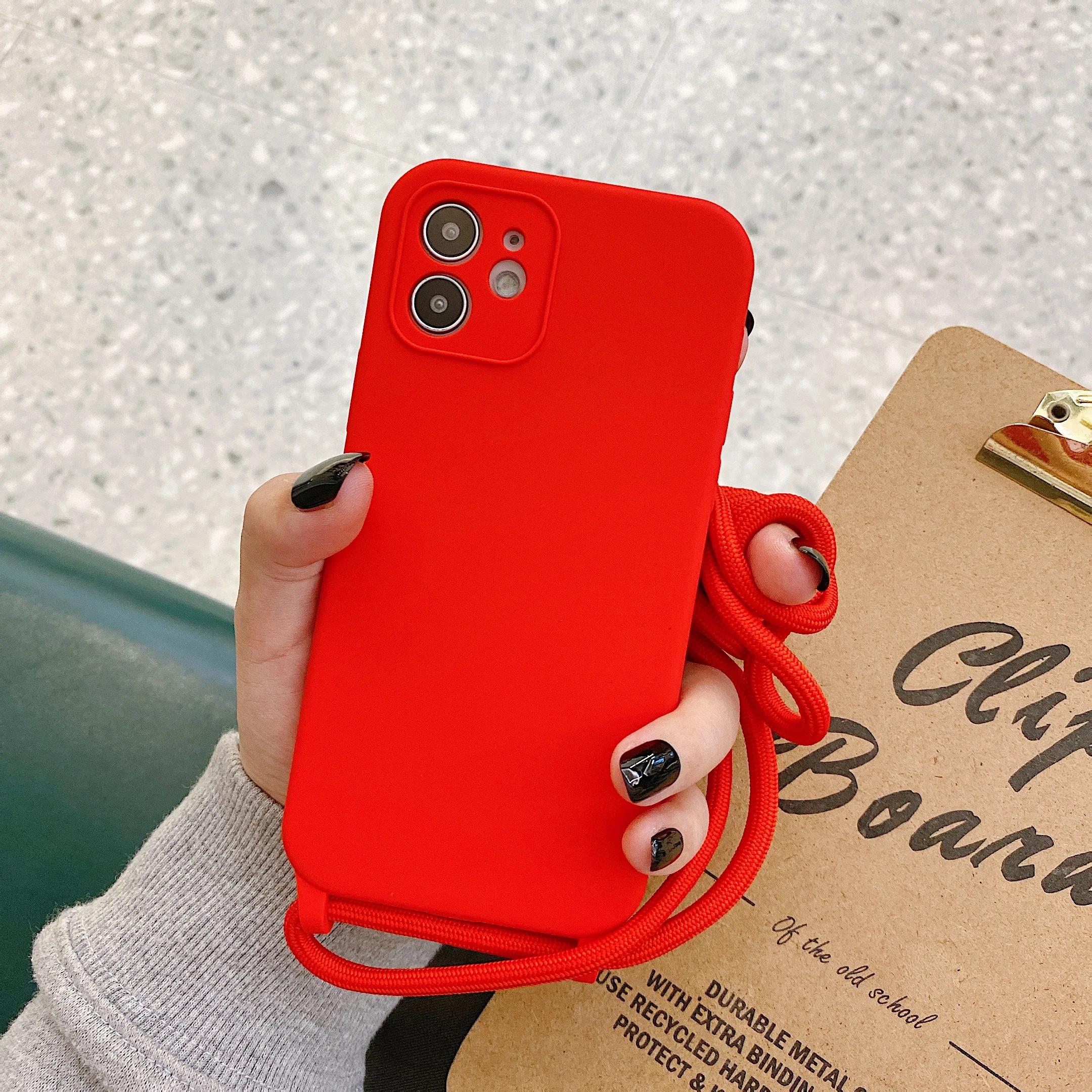 Чехол с ремешком через плечо для iPhone 13, 12, 11 Pro Max, XS, X, XR, SE2, 8, 7 Plus, мягкий силиконовый чехол с ремешком на шею