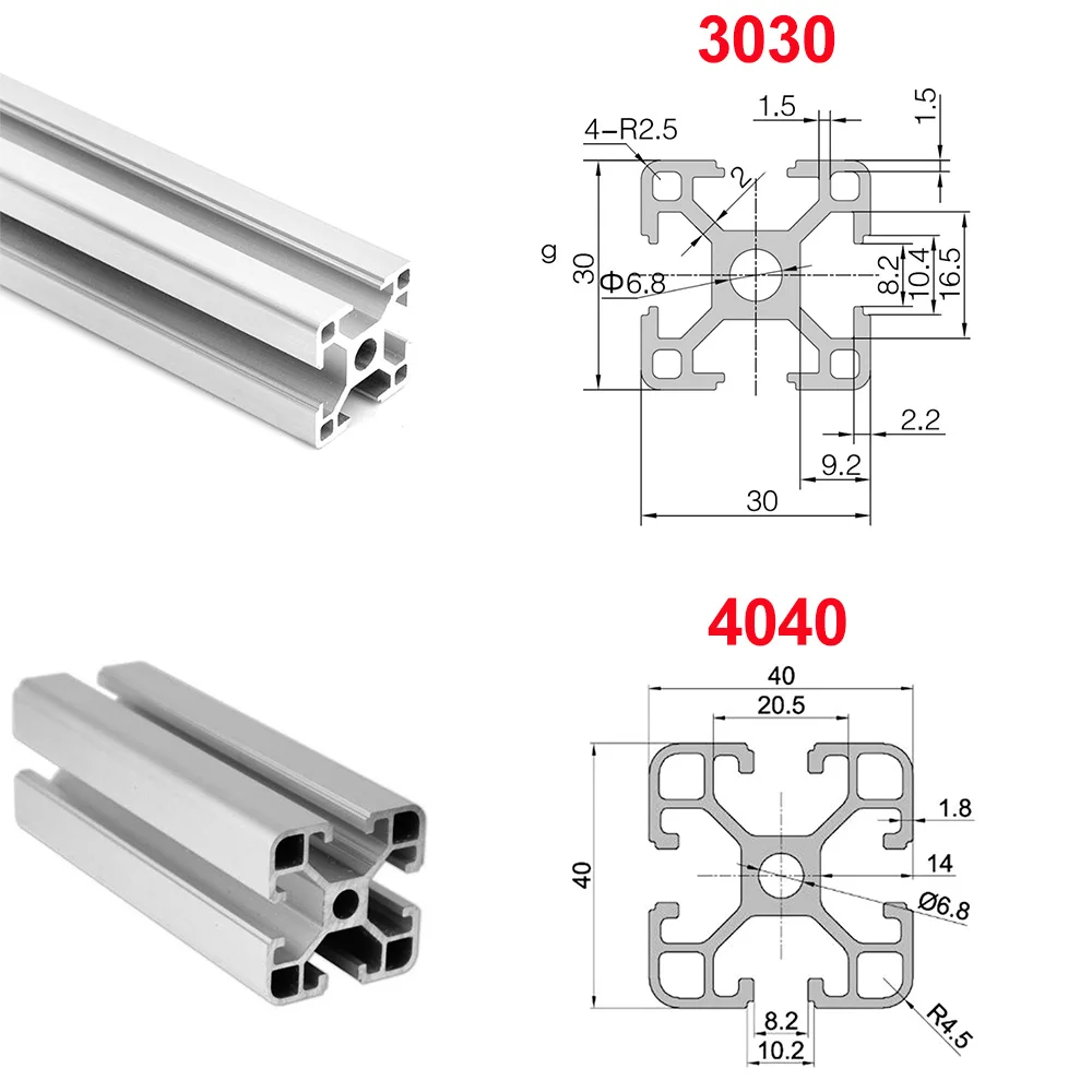 Экструзионный алюминиевый профиль с Т-образным пазом, 2020, 2040, 2080, 201000, 3030, 4040, 600 мм, для 3D-принтера с ЧПУ, 1 шт.