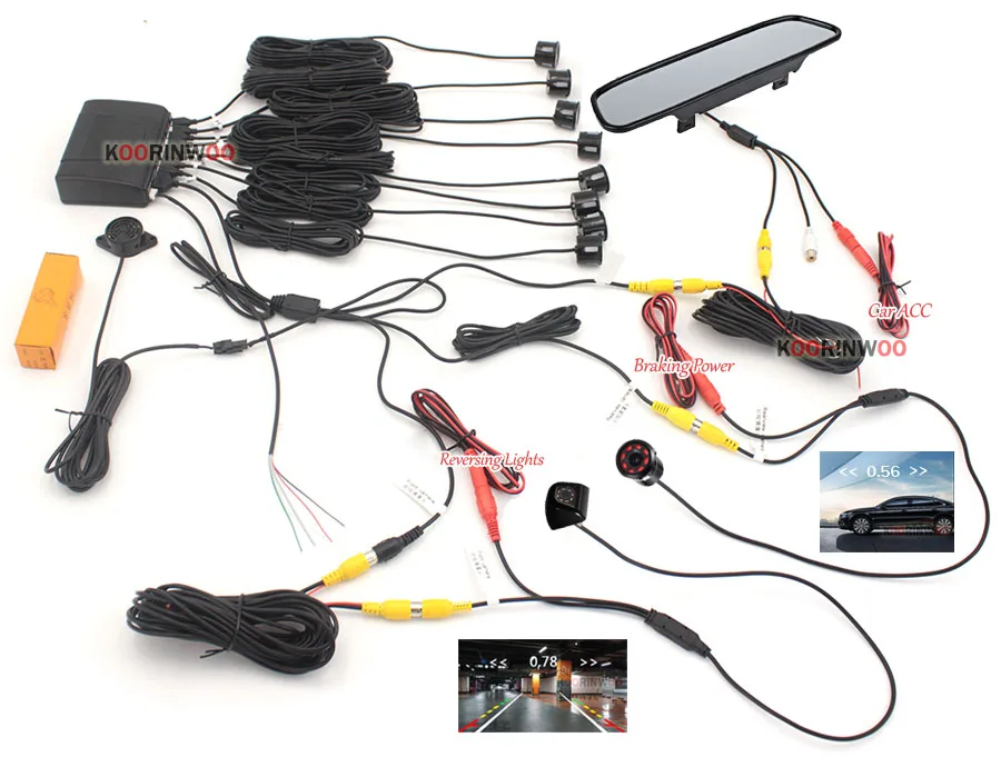 Может быть подключен к камере и любому монитору заднего вида и отображается расстояние на мониторе