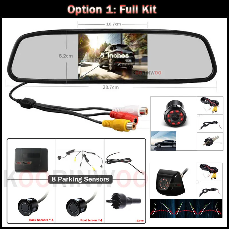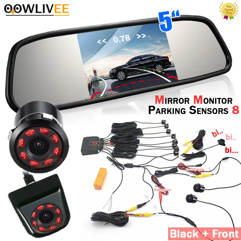 Парктроник OOWLIVEE, HD 5 "зеркальный монитор, автомобильные Датчики парковки, 8 парковочных систем, видеокамера заднего динамика, фронтальная камера с траекторией