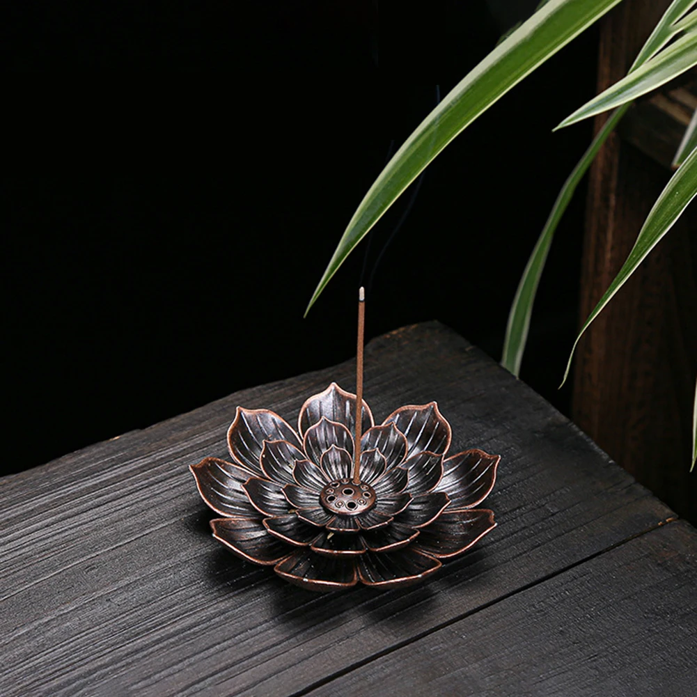 Подставка для курильницы из сплава, держатель для благовоний в буддистском стиле с линией лотоса, подставка для благовоний из сандалового дерева, дужки для йоги, студийное украшение для дома