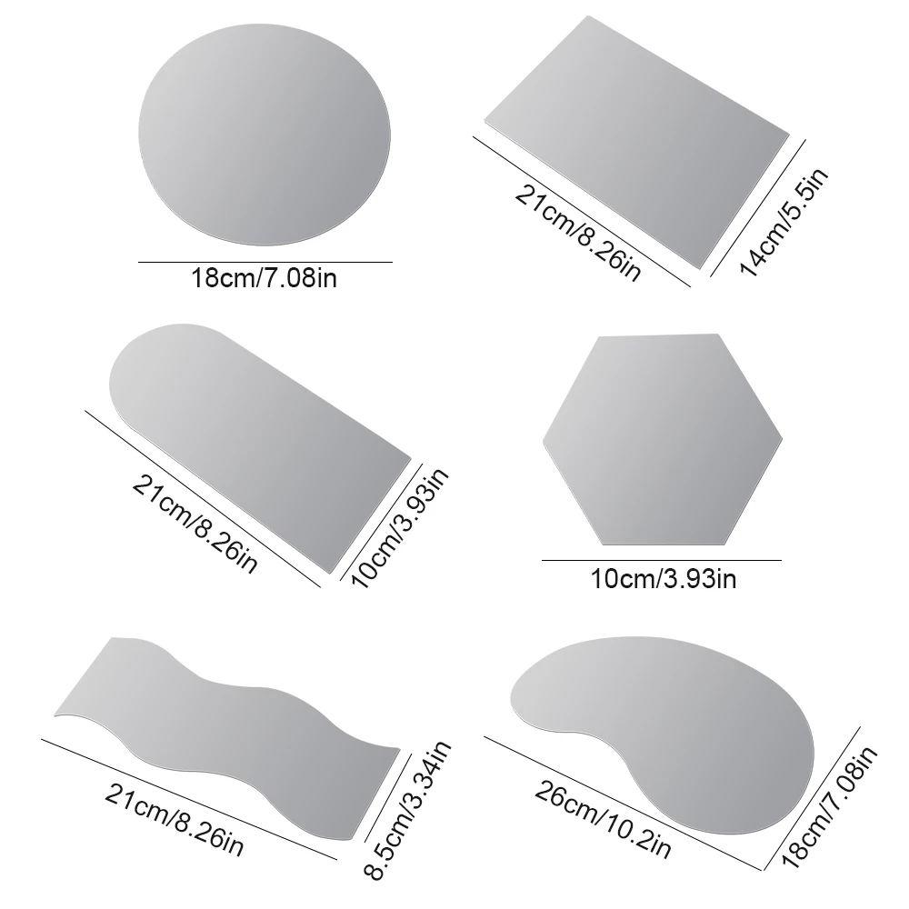 Спецификация:Материал: акриловый зеркальный отражатель Цвет как показано Размер: круглый диаметр 18 см, прямоугольник 14x21 см, форма банта 10x21 см, диагональный шестиугольный диаметр 10 см, Форма S 8.5x21 см, форма фасоли 18x26 см Использование: фон для фотосъемки/реквизит для фотосъемки