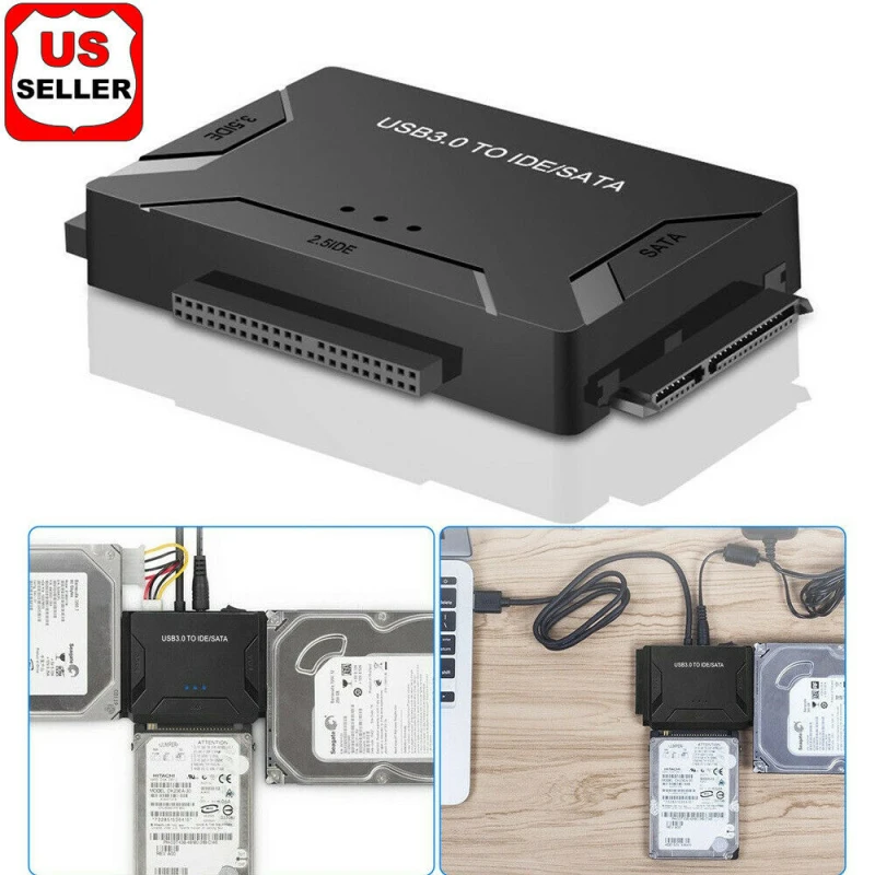 Доступ к 3 дискам одновременно: Этот адаптер USB SATA обеспечивает доступ ко всем трем дискам HDD одновременно или передачу файлов между 3 дисками. Поддерживает 2,5 "/3,5" SATA HDD и SSD; 2,5 "/3,5" IDE HDD; DVD-ROM, CD-ROM, CD-RW, DVD-RW, DVD + RW.