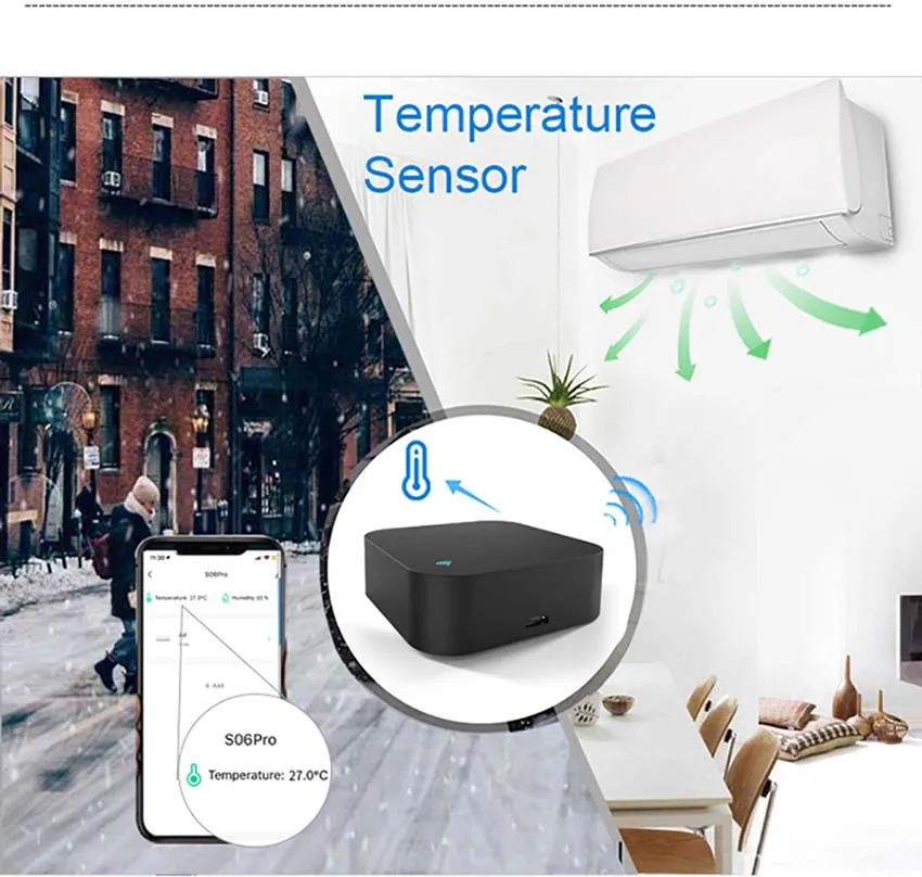 С помощью встроенного датчика вы можете узнать температуру и влажность в помещении в любое время. И в соответствии с их ценностями, сделайте последующую автоматизацию. Например, включите кондиционер, когда температура выше 26 ℃, и включите увлажнитель воздуха при влажности менее 50%