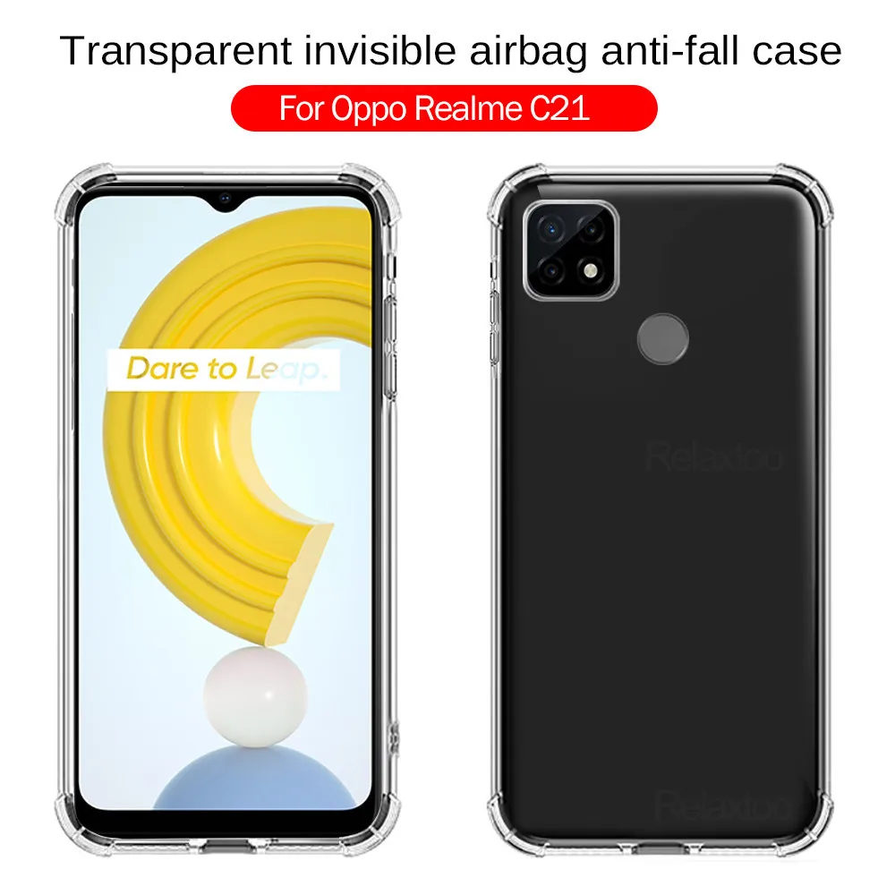 Прозрачный ударопрочный чехол для Realme C21, мягкие чехлы для Oppo Realme-C21 RealmeC21 Realmi Realmy C 21, бампер для телефона