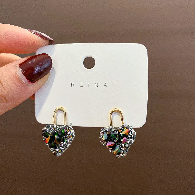 Винтажные женские милые серьги-подвески в форме сердца 2022 модные черные серьги с кристаллами в форме сердца для женщин ювелирные изделия подарки