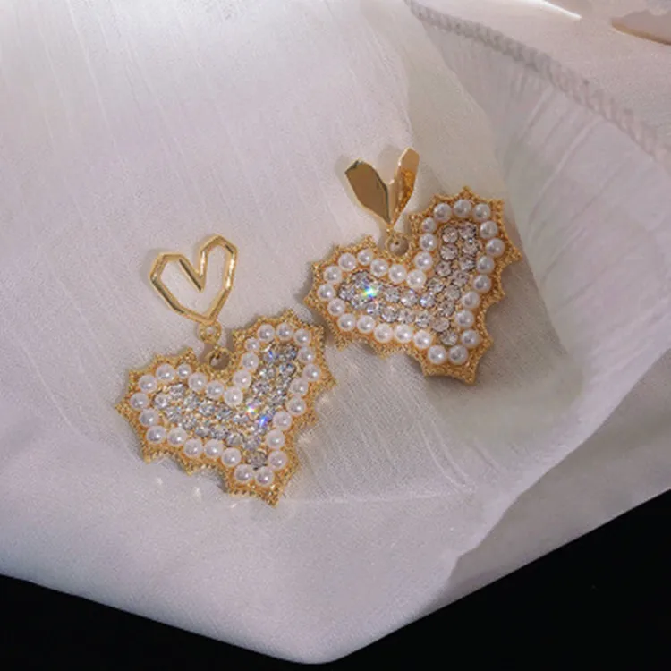 Милые серьги-гвоздики с имитацией жемчуга в виде сердца, изящные золотистые мини гвоздики для ушей, трендовые серьги для женщин и девочек, ювелирные изделия, подарок 2021