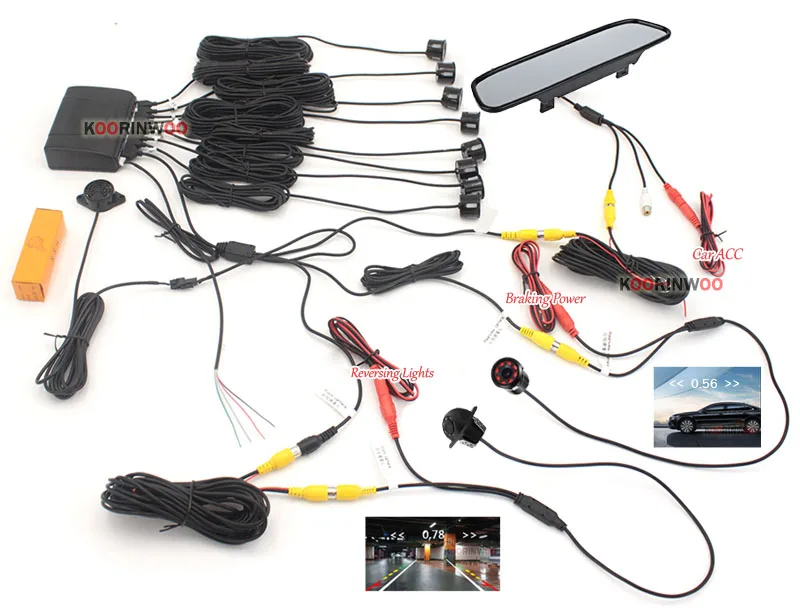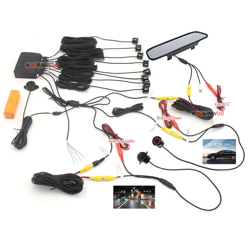 Парктроник OOWLIVEE, полный комплект, зеркало с 5 "монитором, датчики парковки, 8 дюймов, с динамической камерой заднего вида, оповещением о передней форме, ночным видением