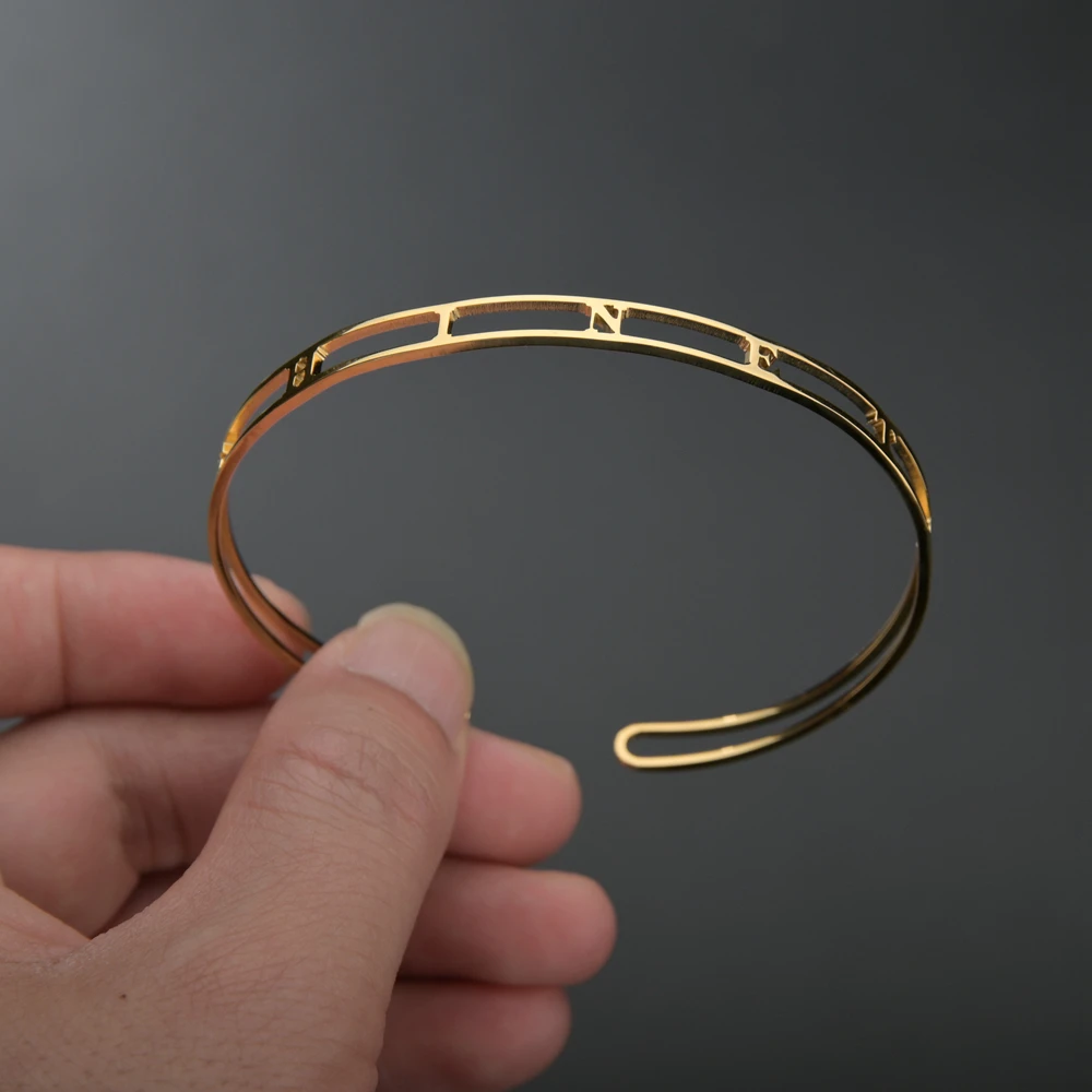 Имя:Женский индивидуальный браслет Atoztide, Открытый браслет из нержавеющей стали, 3 цвета