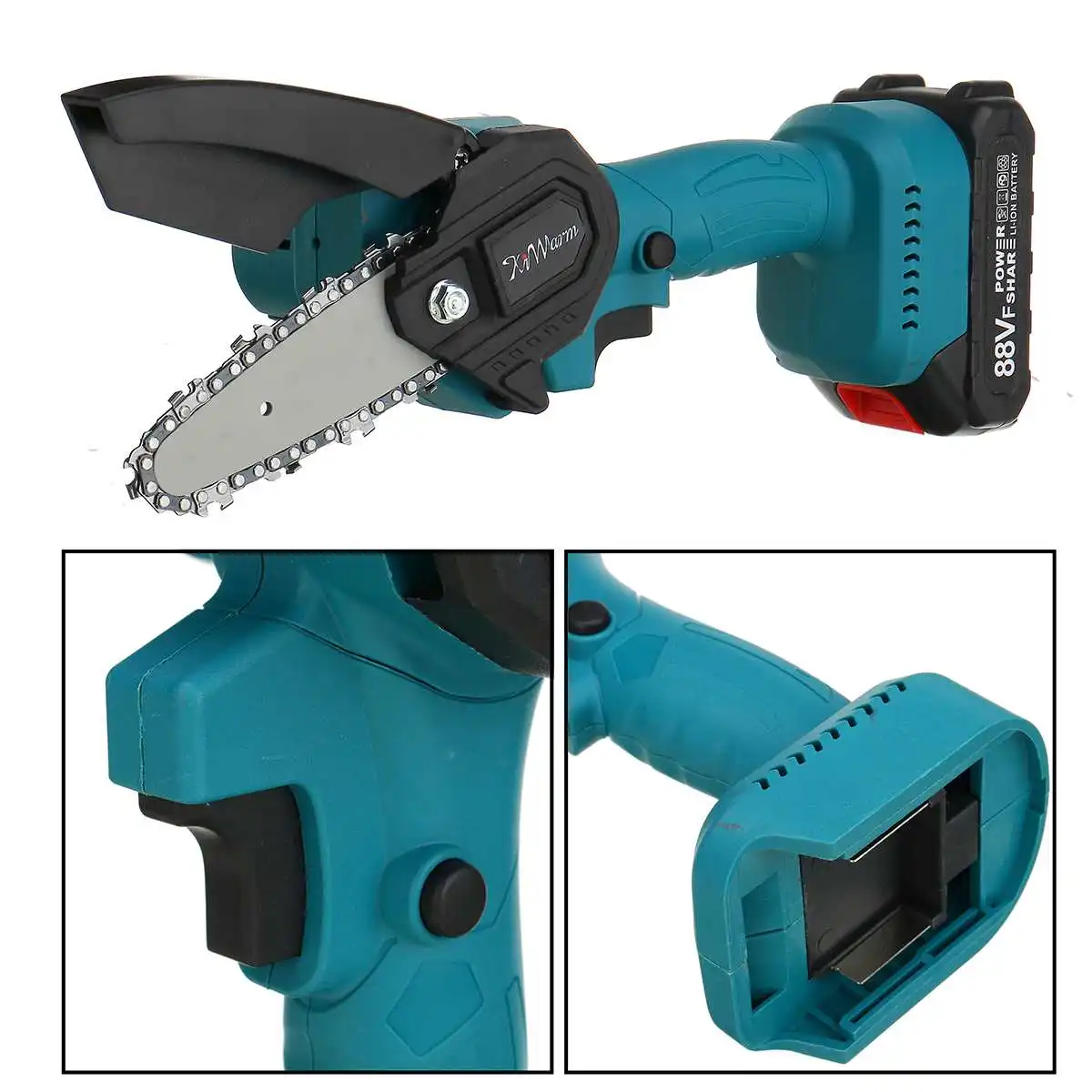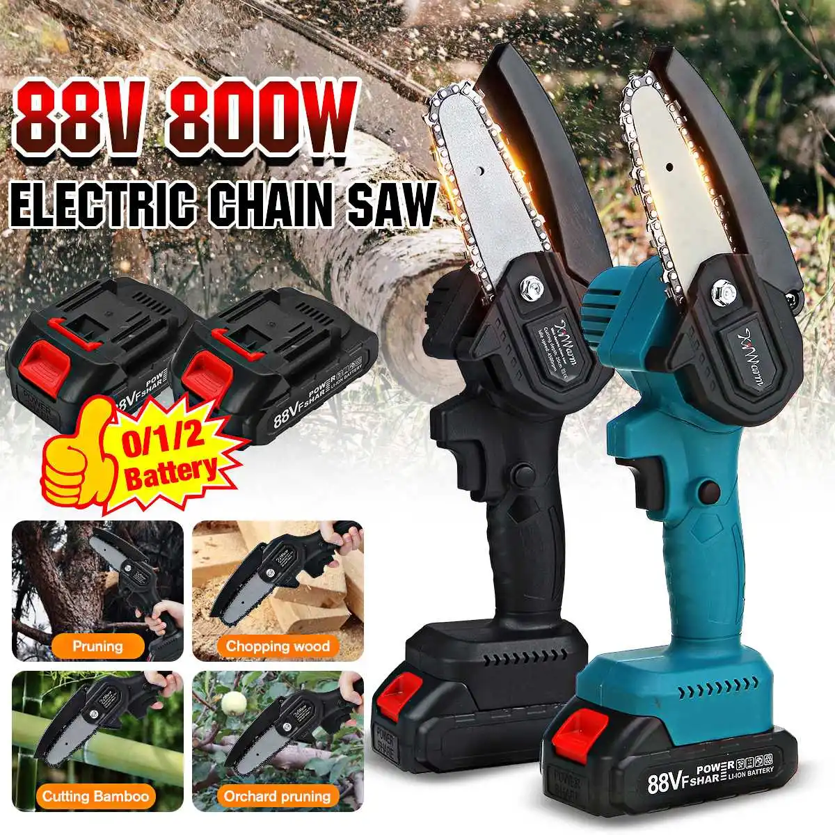 Электрическая цепная пила, садовая мини-пила 800 Вт, 4 дюйма, 88 в с 2 литиевыми батареями, для деревообработки