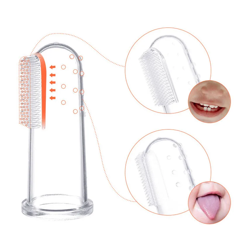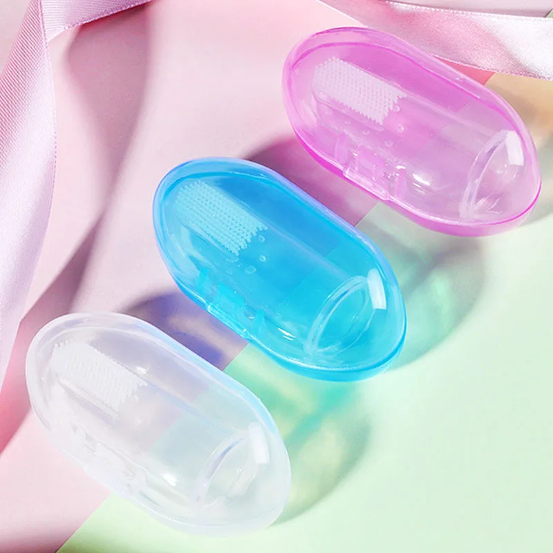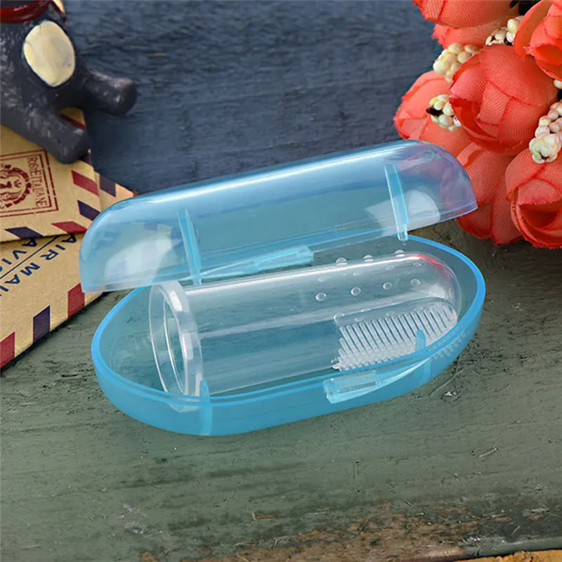 Детская зубная щетка на палец в коробке, Детская прозрачная Массажная мягкая силиконовая резиновая щетка для чистки, уход за ребенком, зубная щетка