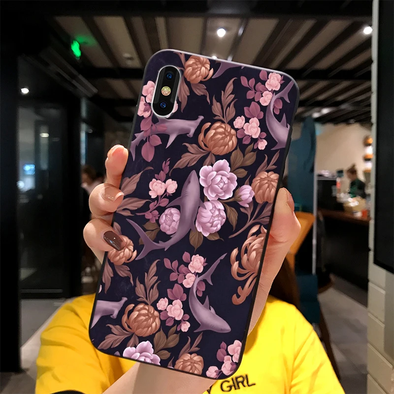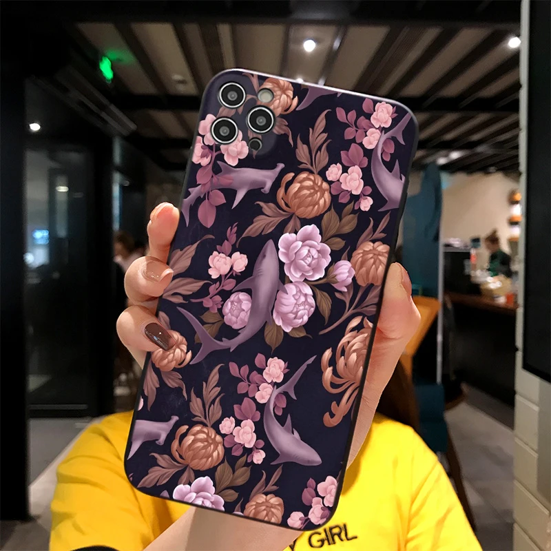 Мягкий матовый чехол для iPhone 6 7 8 11 12 Plus Pro X XR MAX 2021 с рисунком растительных акул (розовый и Золотой)