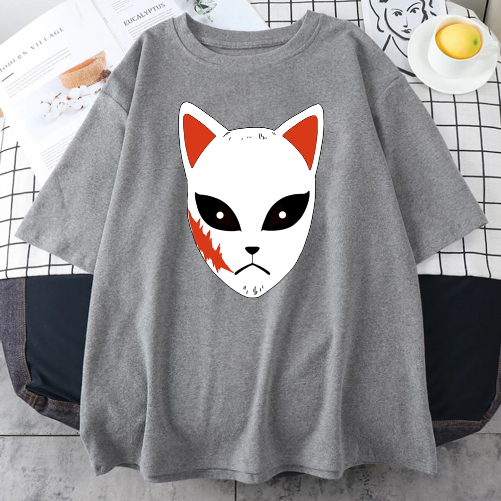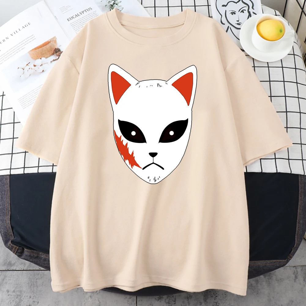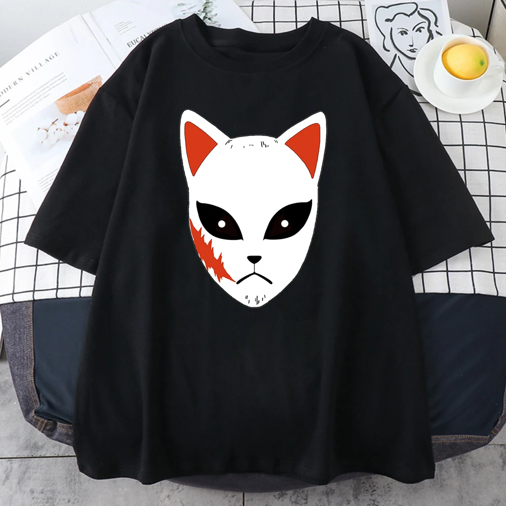 Женская футболка с принтом демонов, рассекающих лисицу маску, в японском стиле, одежда с коротким рукавом, футболка с круглым вырезом, летняя дышащая футболка