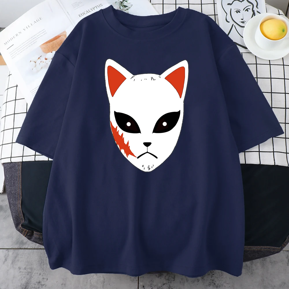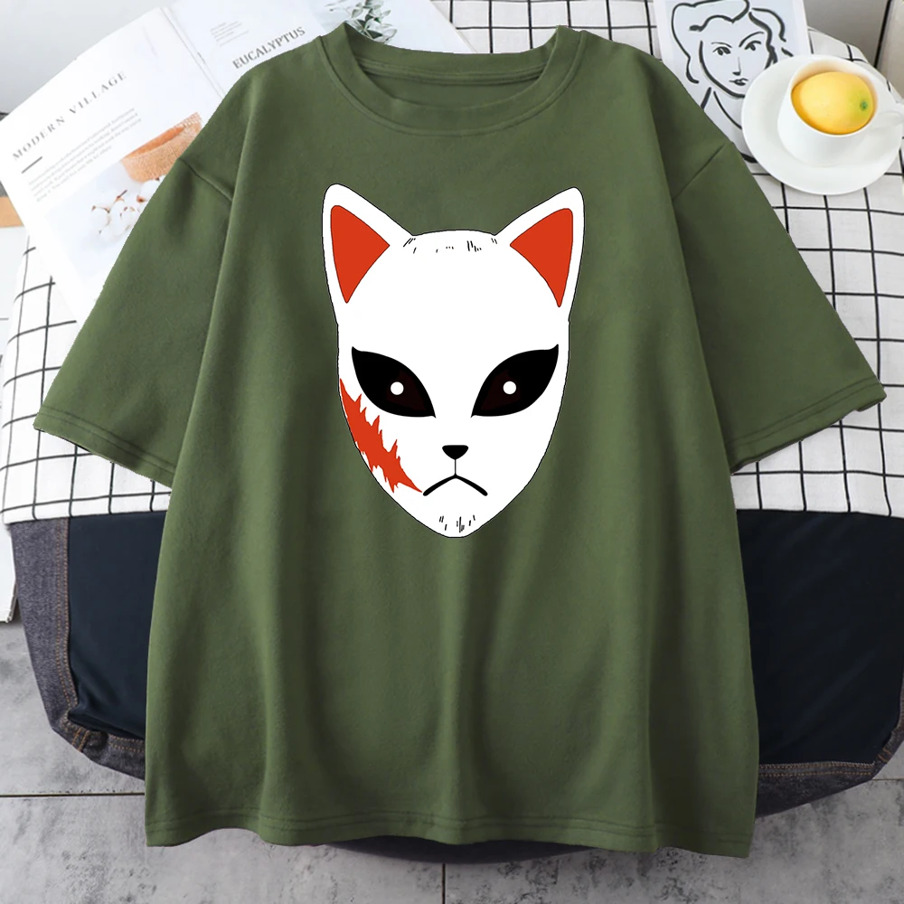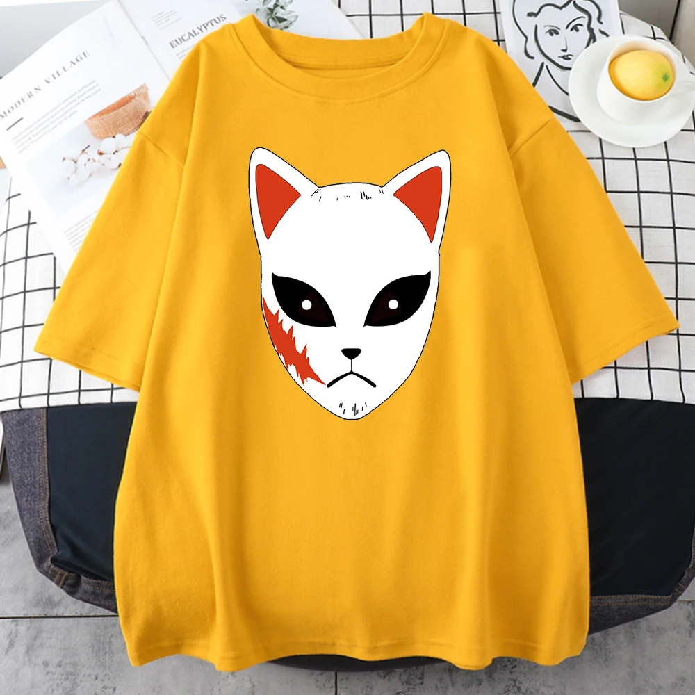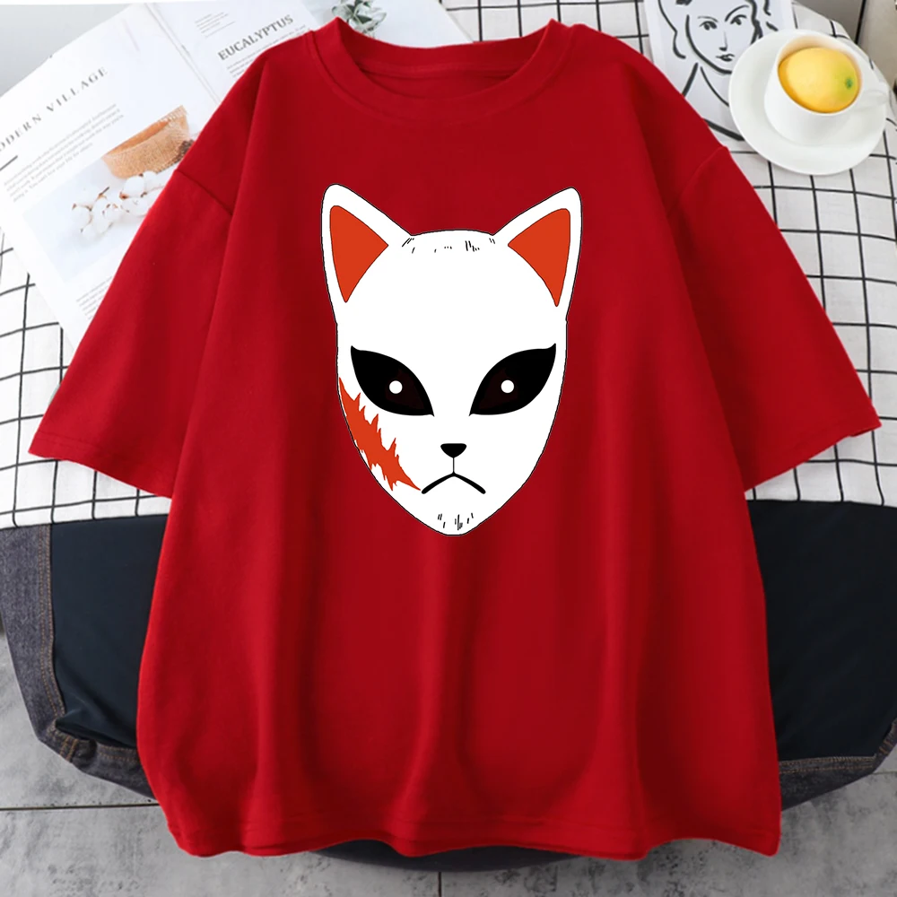 Женская футболка с принтом демонов, рассекающих лисицу маску, в японском стиле, одежда с коротким рукавом, футболка с круглым вырезом, летняя дышащая футболка
