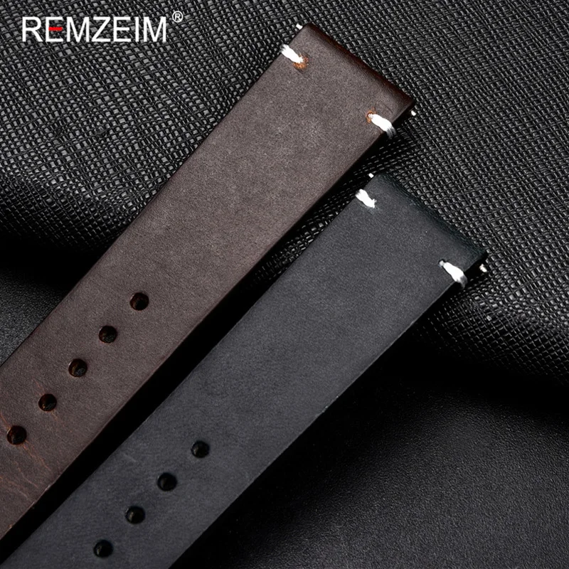 Ремешок из натуральной кожи, масляный, масляный, Обесцвеченный, 18, 20, 22, 24 мм