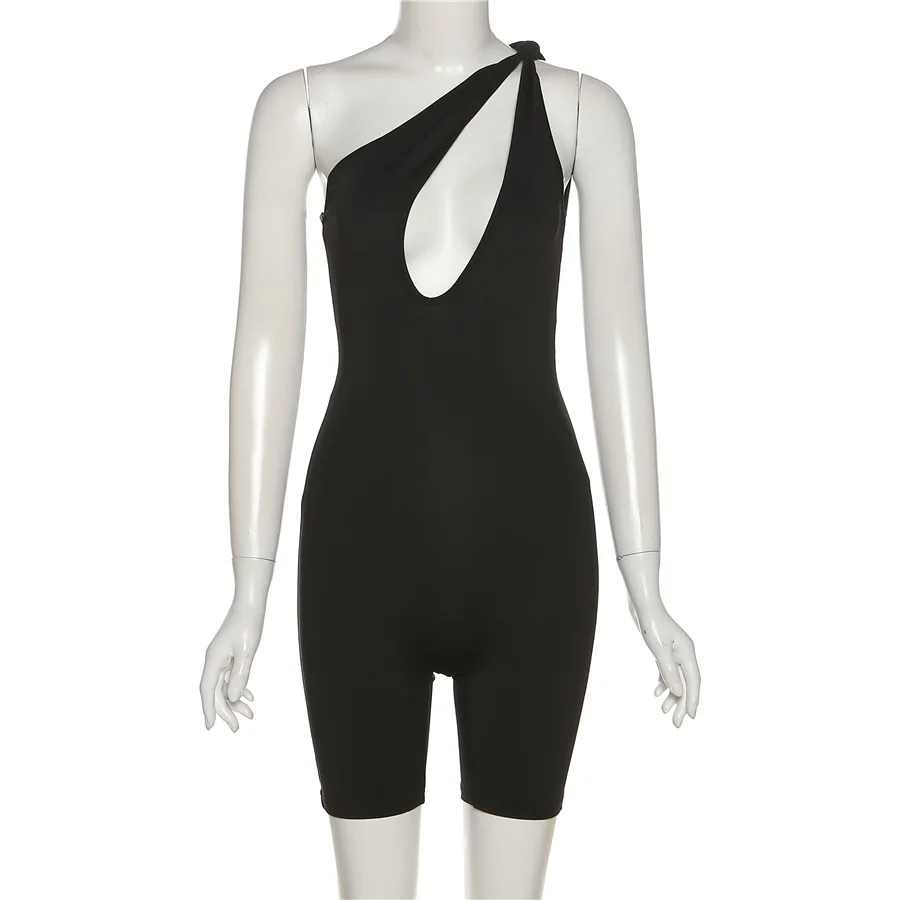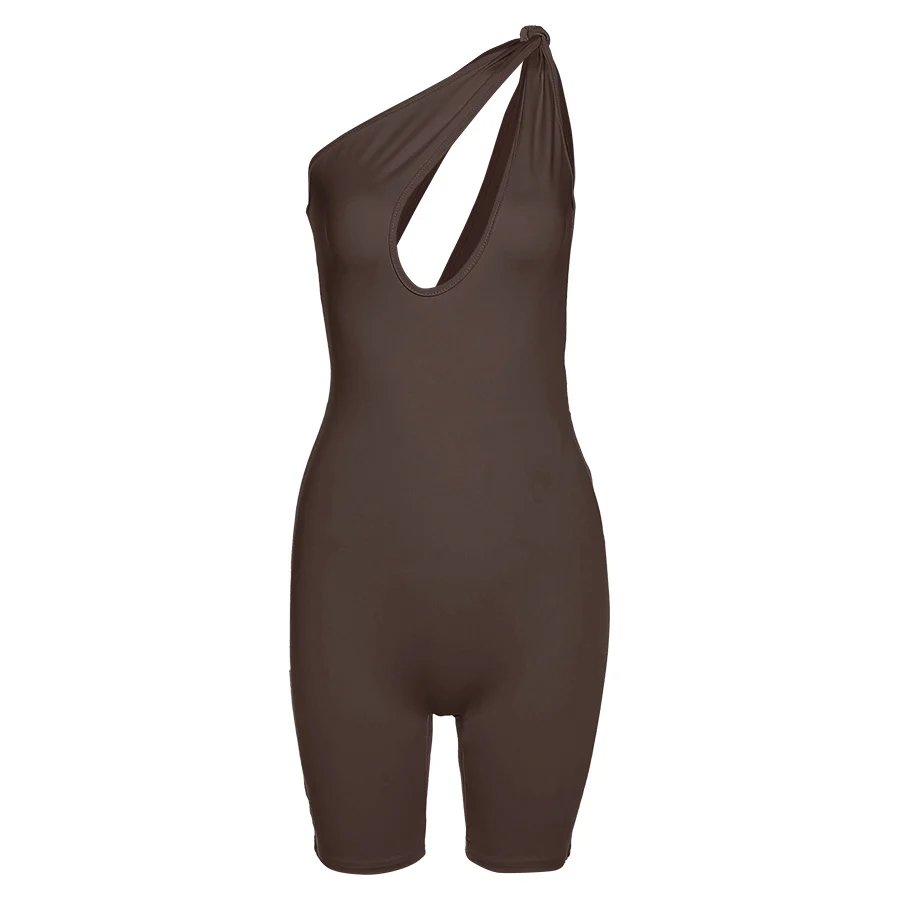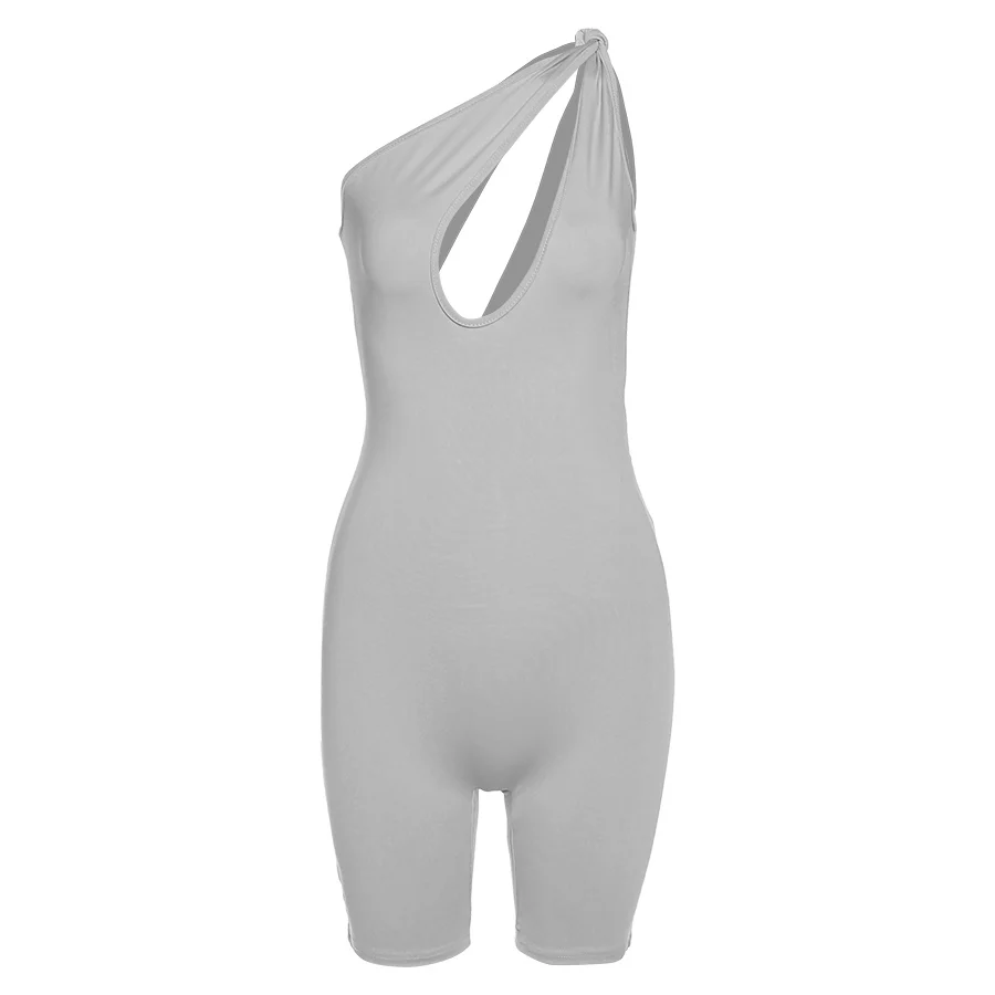 Комбинезон женский короткий, однотонный, на одно плечо, без рукавов...