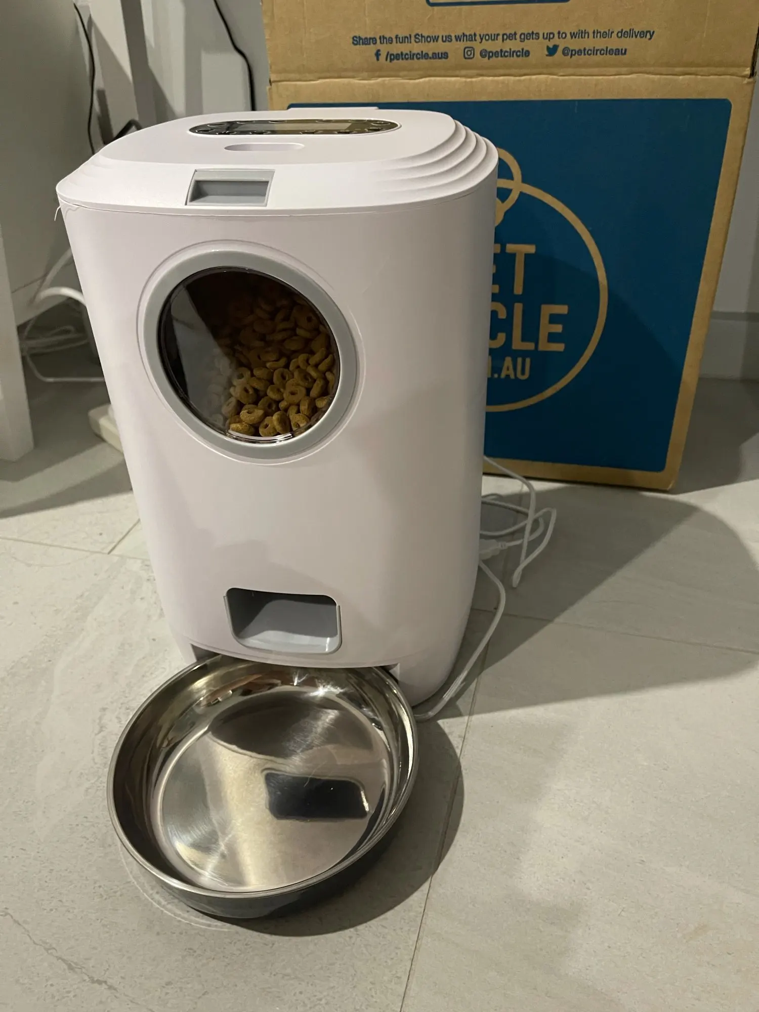 Хорошая кормушка. В программе 4 кормления. Вес порции можно настроить на каждый приём пищи. Очень удобно если животное любит много есть